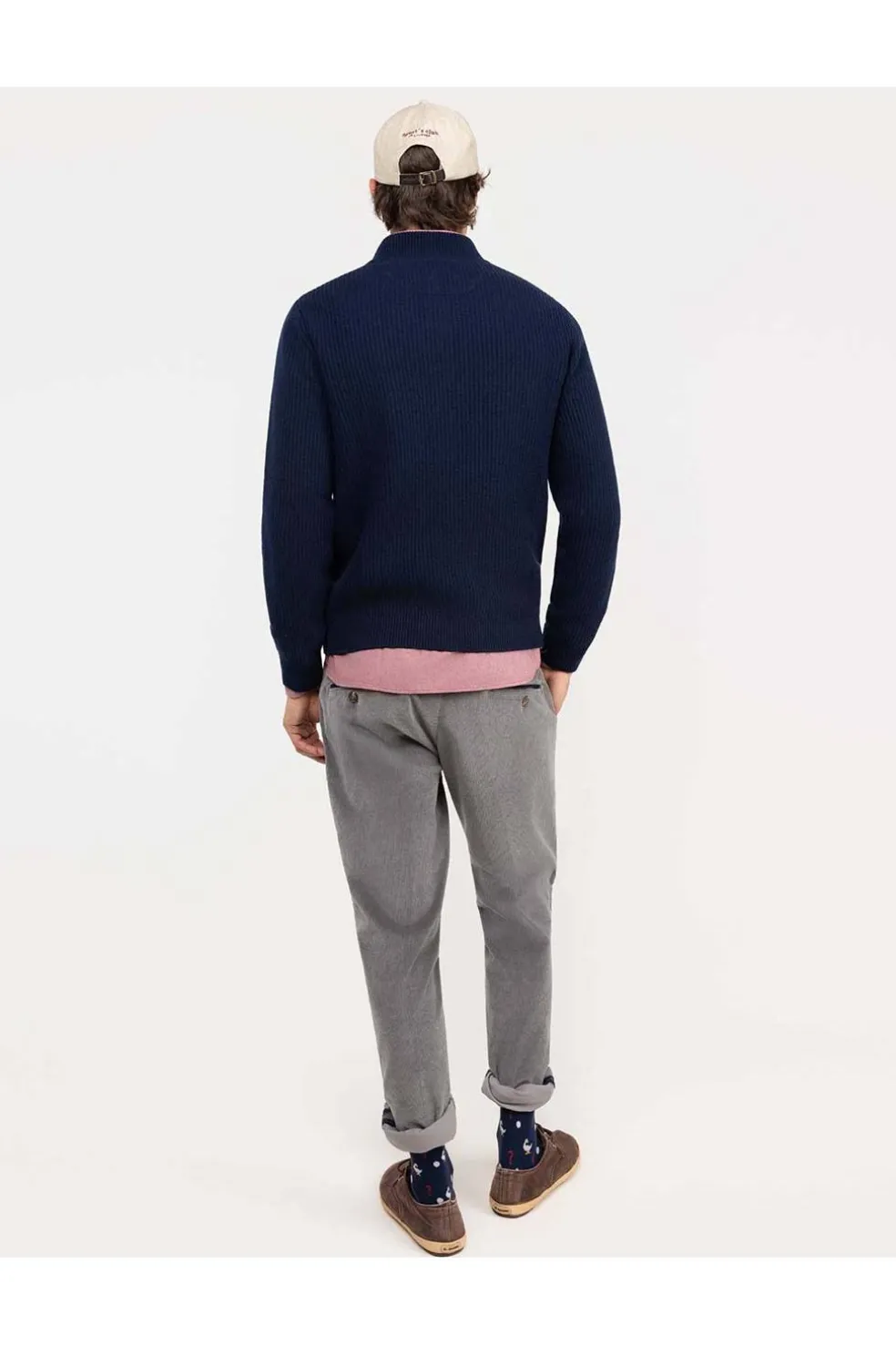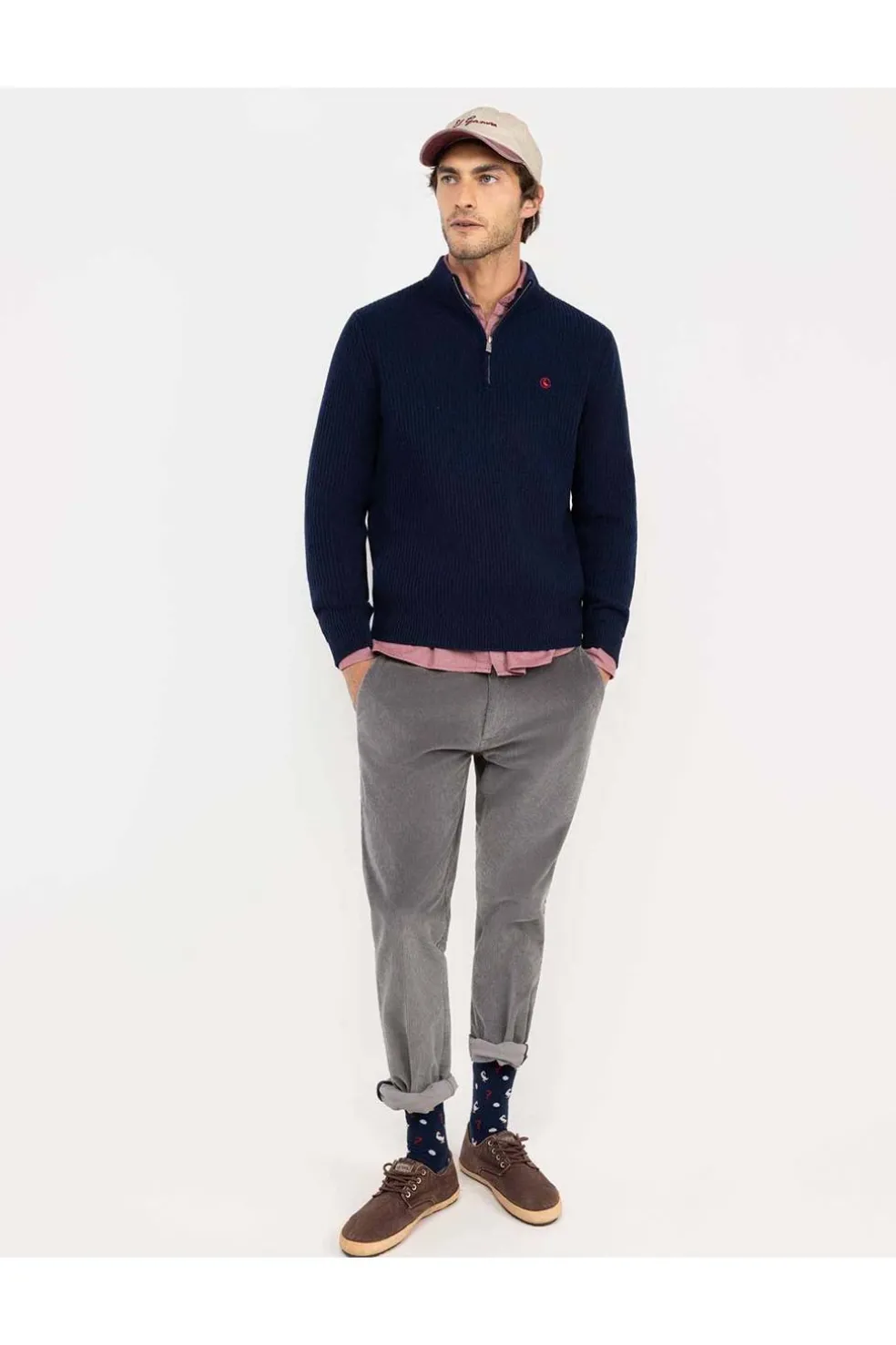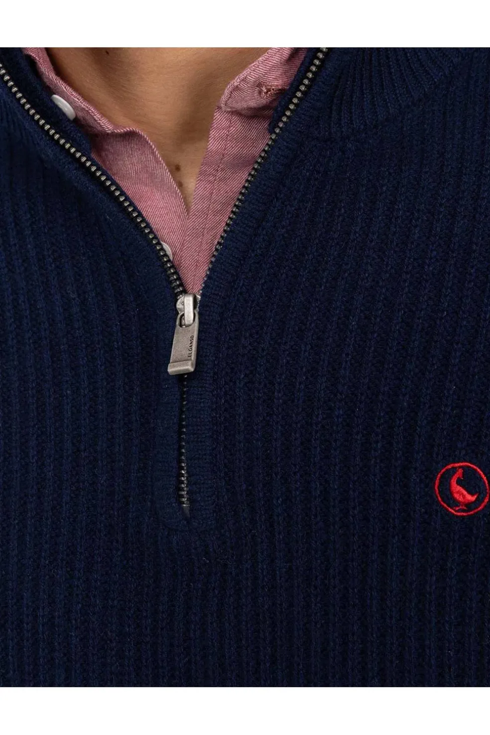 Jersey liso de hombre cuello mock fabricado en mezcla de lana y nylon para conseguir una calidad con mayor suavidad. Corte regular fit, cuello mock y cierre mediante cremallera. Manga larga acabada en rib y detalle en la cremallera. Logo bordado en el pecho.