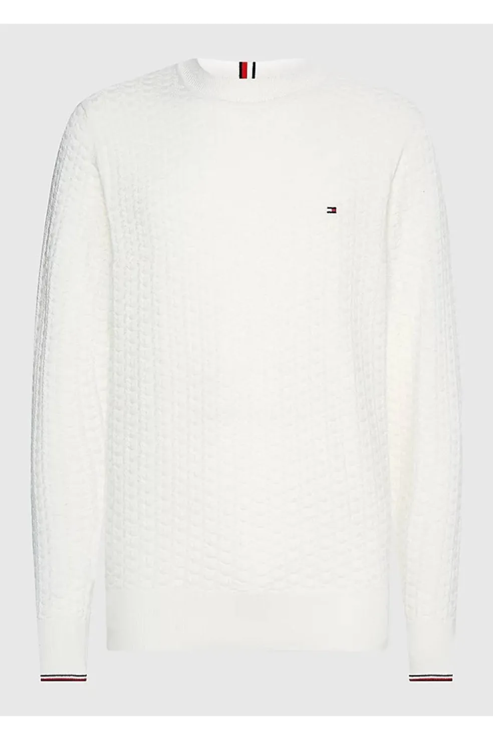 Este jersey de punto estructurado, confeccionado en puro algodón orgánico, luce un diseño texturizado y puños ribeteados con cinta distintiva.