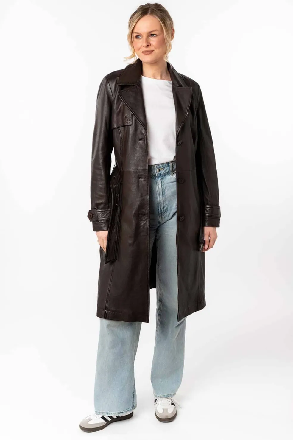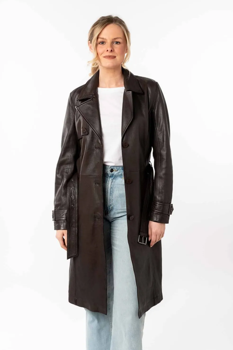 La levita de piel Liya de Mauritius es una prenda elegante y atemporal diseñada para la mujer moderna. Confeccionada en piel auténtica de alta calidad, destaca por su acabado en color marrón que realza su estilo sofisticado y versátil. Su corte regular fit ofrece una silueta cómoda y favorecedora, mientras que el cinturón ajustable permite resaltar la cintura y adaptar el ajuste según la ocasión. Incluye bolsillos laterales prácticos y un bolsillo interior discreto, ideales para llevar lo esencial con seguridad.