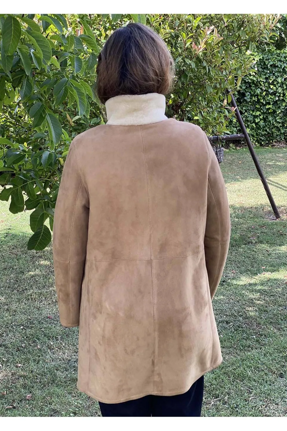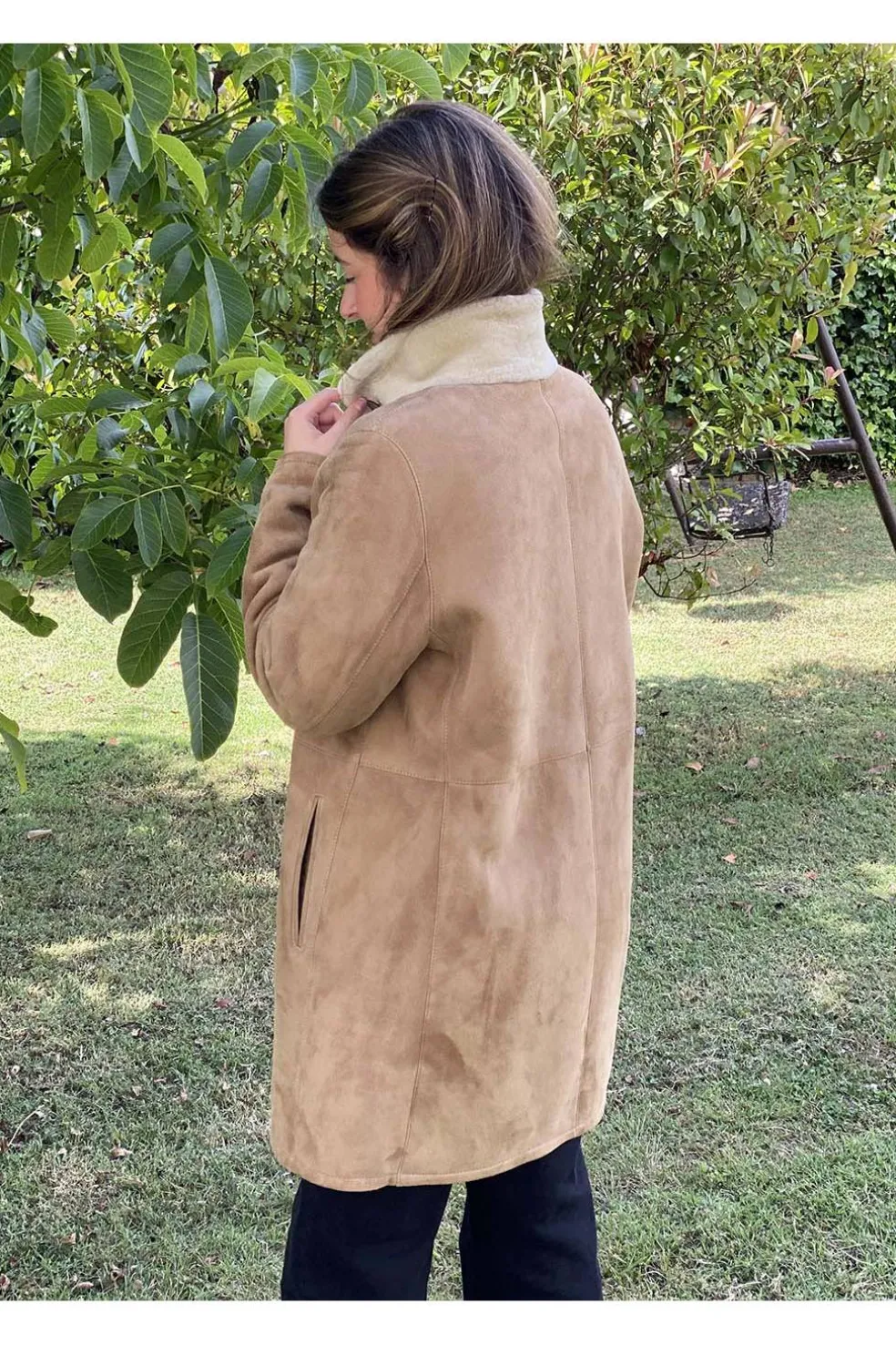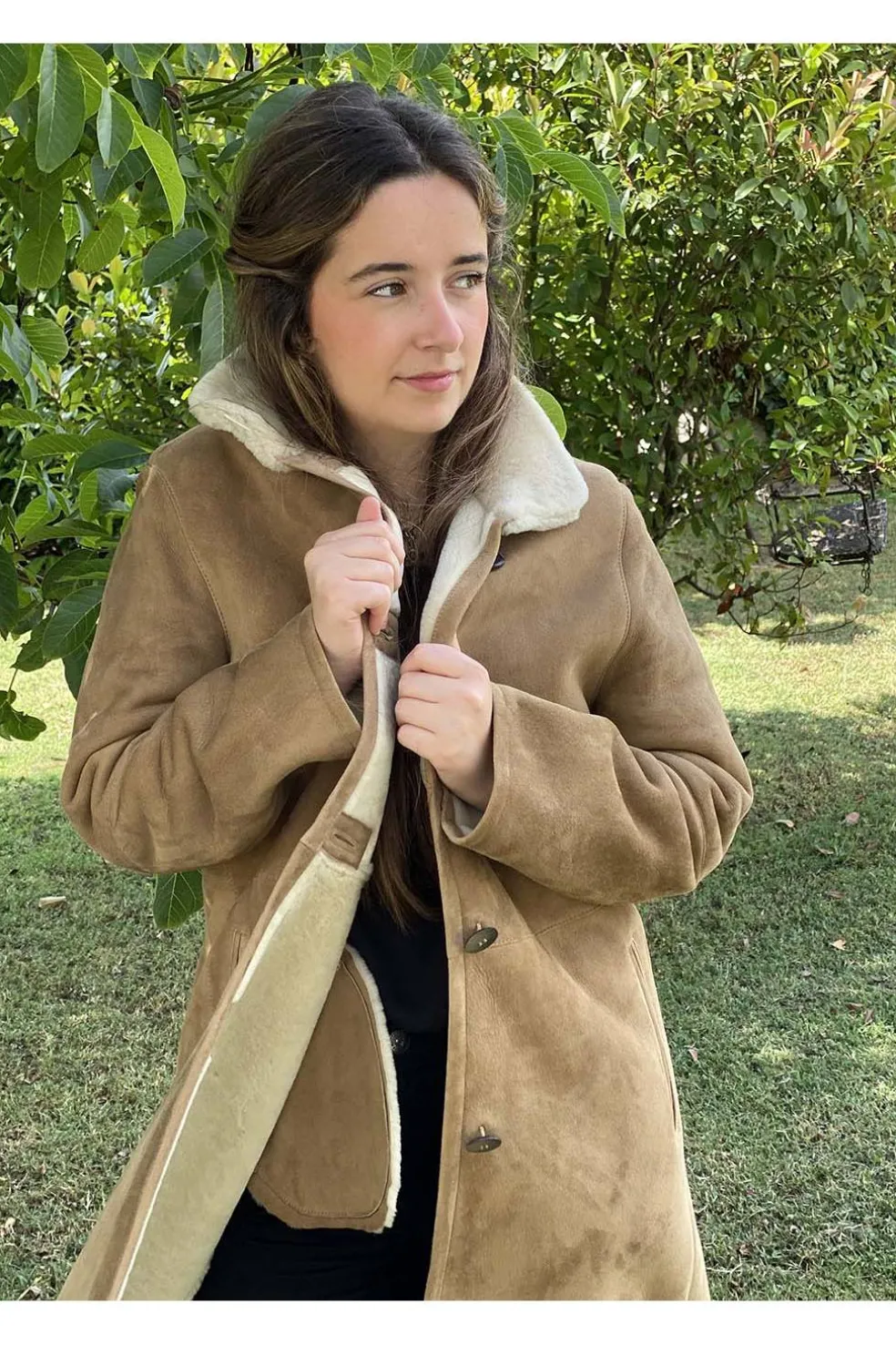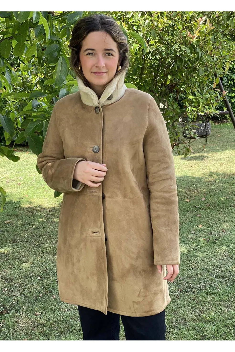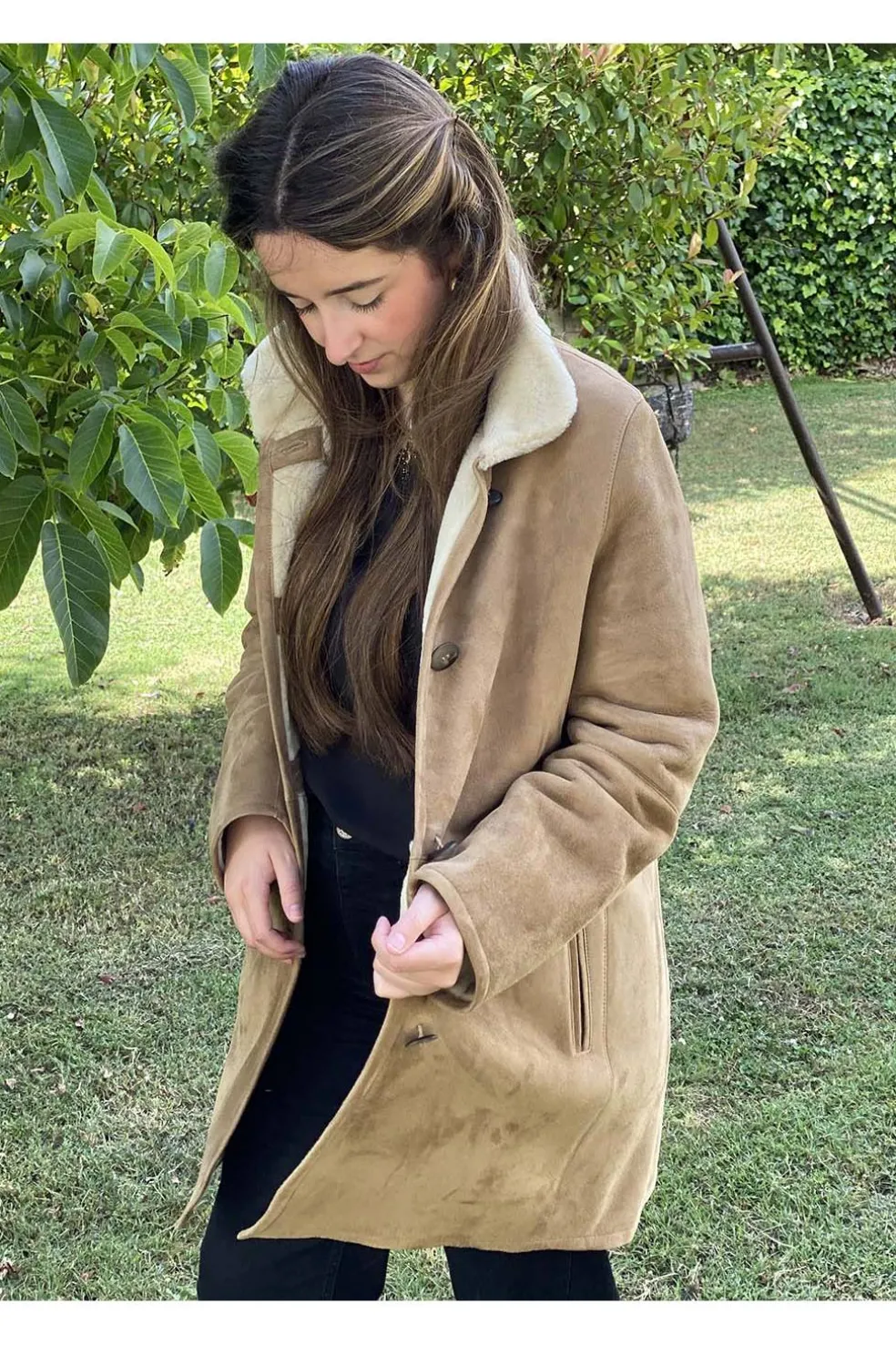 Pelliza de piel natural con forro de borreguito en contraste . Un prenda actualizada que recuerda a las prendas de piel de hace años. Piel joven y suave. Se puede fabricar por encargo. 100% piel natural. Hecho en España. Marca Medinapiel. Largo prenda 85 cms.