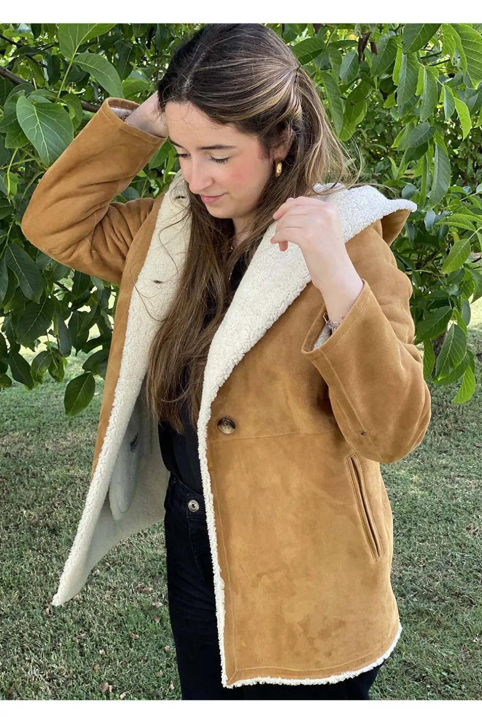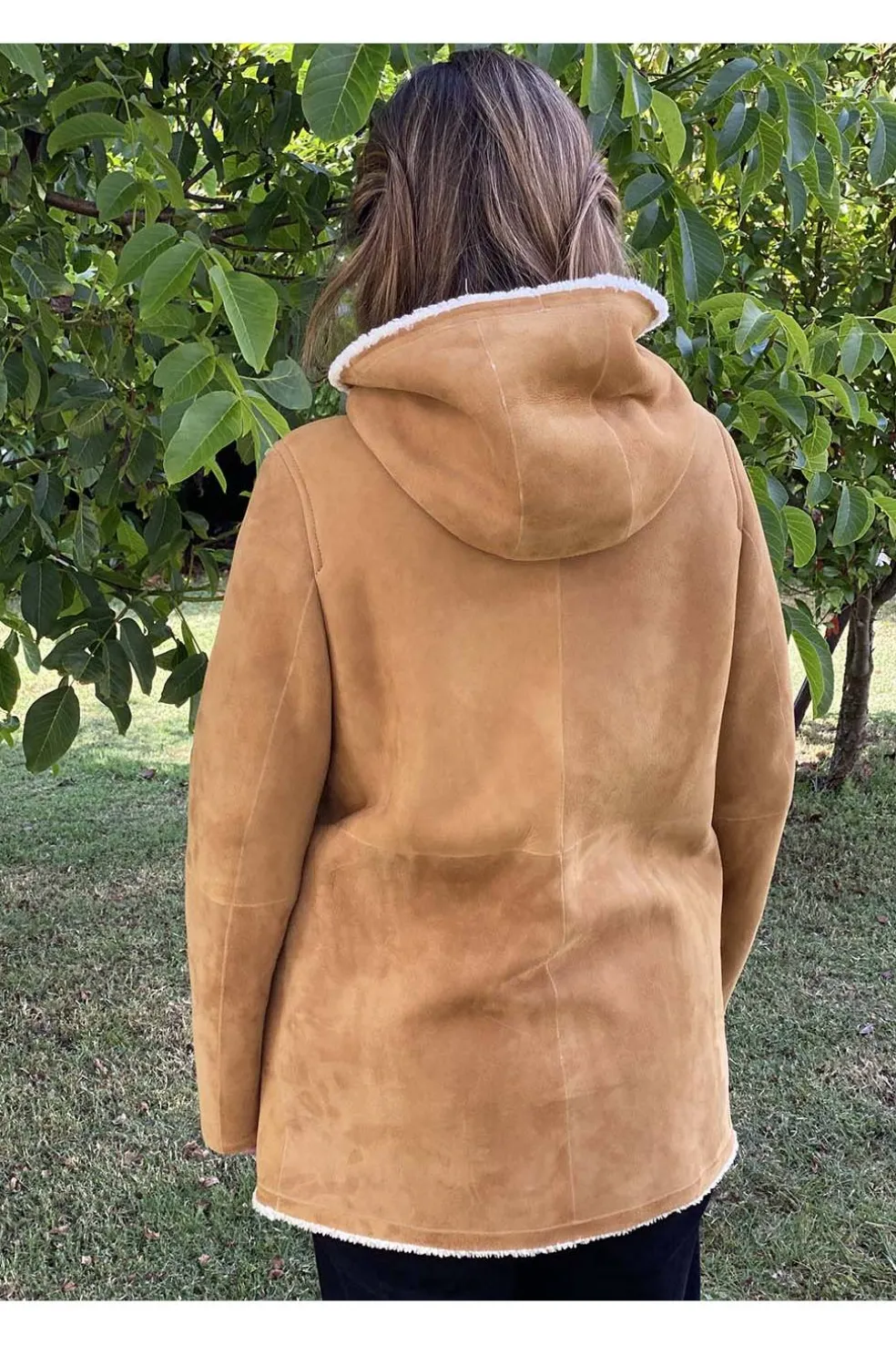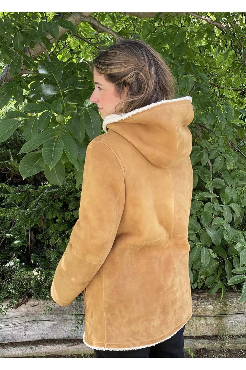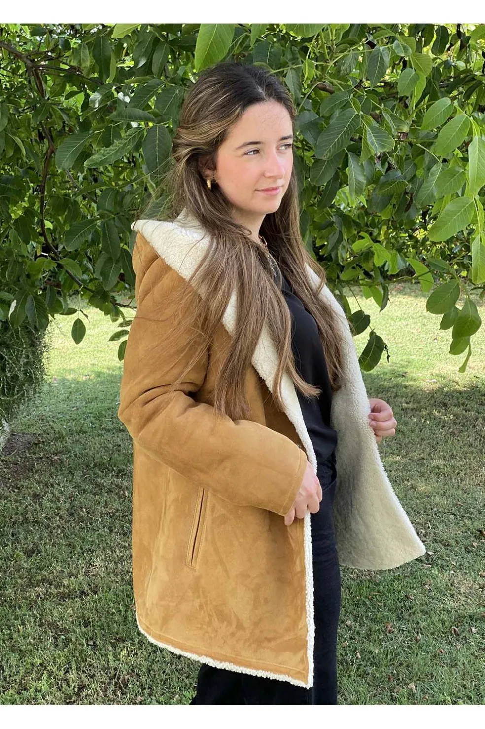 Pelliza de piel natural con forro de borreguito en contraste y capucha , acabado anteado y el pelo con un ligero rizado que le da un aspecto más sport y joven . Es una prenda muy ligera y cálida con una largura de 73 cms . Patrón regular, la modelo lleva la 40 y mide 1.70 y pesa unos 60 kgs . Consúltanos la mejor talla que podemos fabricar para tí . Son prendas atemporales que duran muchas temporadas.