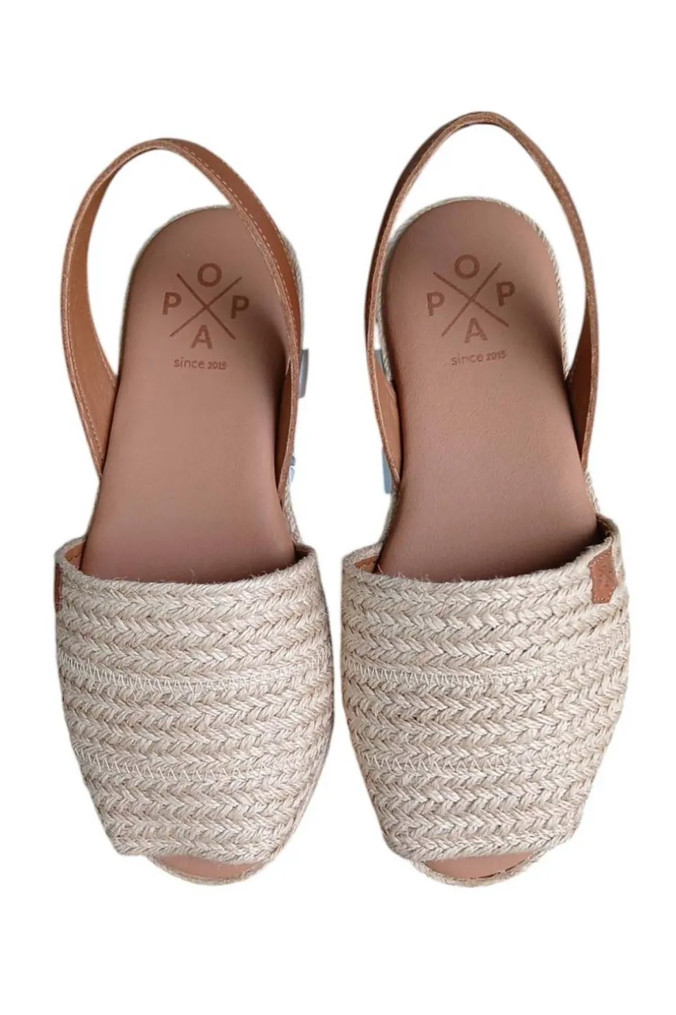 El modelo Falesia te acompañará en todos tus planes. Unas menorquinas abarcas planas y cómodas no pueden faltar en tu fondo de armario. En material rafia y con un toque especial en tono cuero en su trasera.