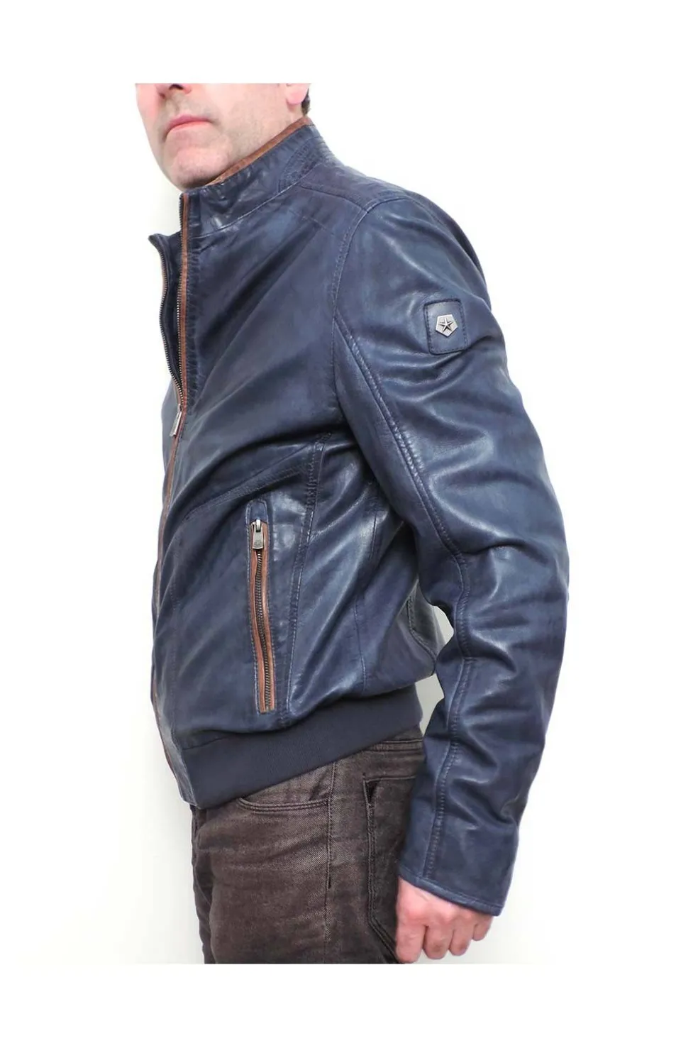 La chaqueta de corte recto, hecha de cuero suave, proporciona un ajuste informal gracias a su cintura elástica de canalé. Los atributos clásicos, como un cuello alto, una cremallera de cuerpo entero y dos bolsillos laterales dan un toque especial, mientras que las ribetes decorativos contrastan con la distintiva insignia del logotipo en la manga y completan la imagen general.