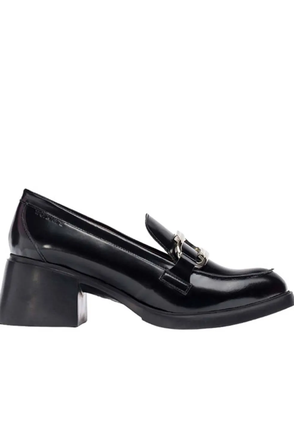 Mocasín Kimba, confeccionado en piel acabado florentic de color negro, un clásico que nunca pasa de moda. Su diseño presenta una maxi hebilla que añade un toque de estilo único al diseño. Su tacón cuadrado y su suela desarrollada con la tecnología WondersFly™.