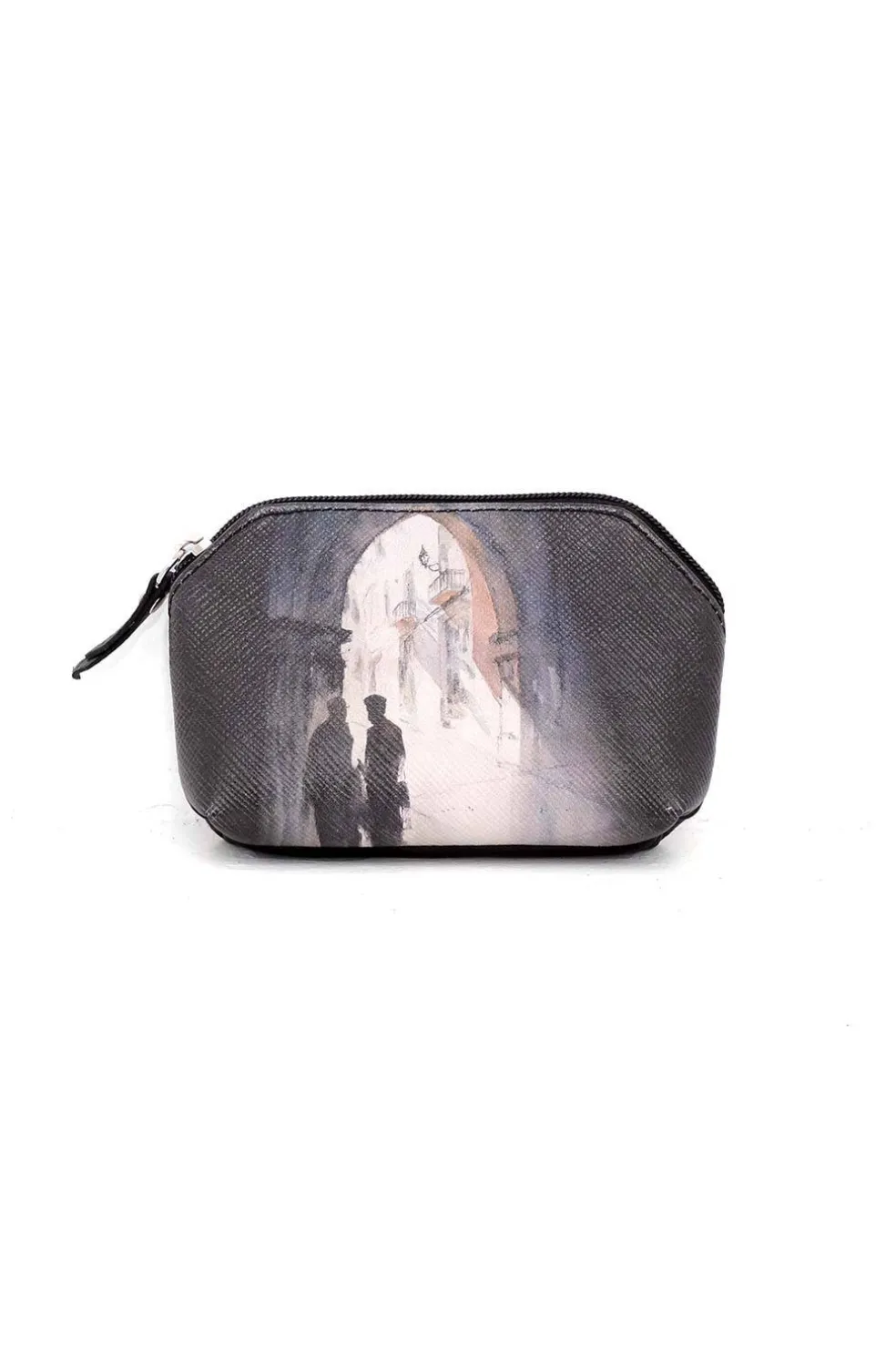 Monedero de piel natural con print exclusivo del Arco de la Cadena con sombras ilusión en Medina de Pomar, edición limitada y fabricado en España por maestros artesanos.