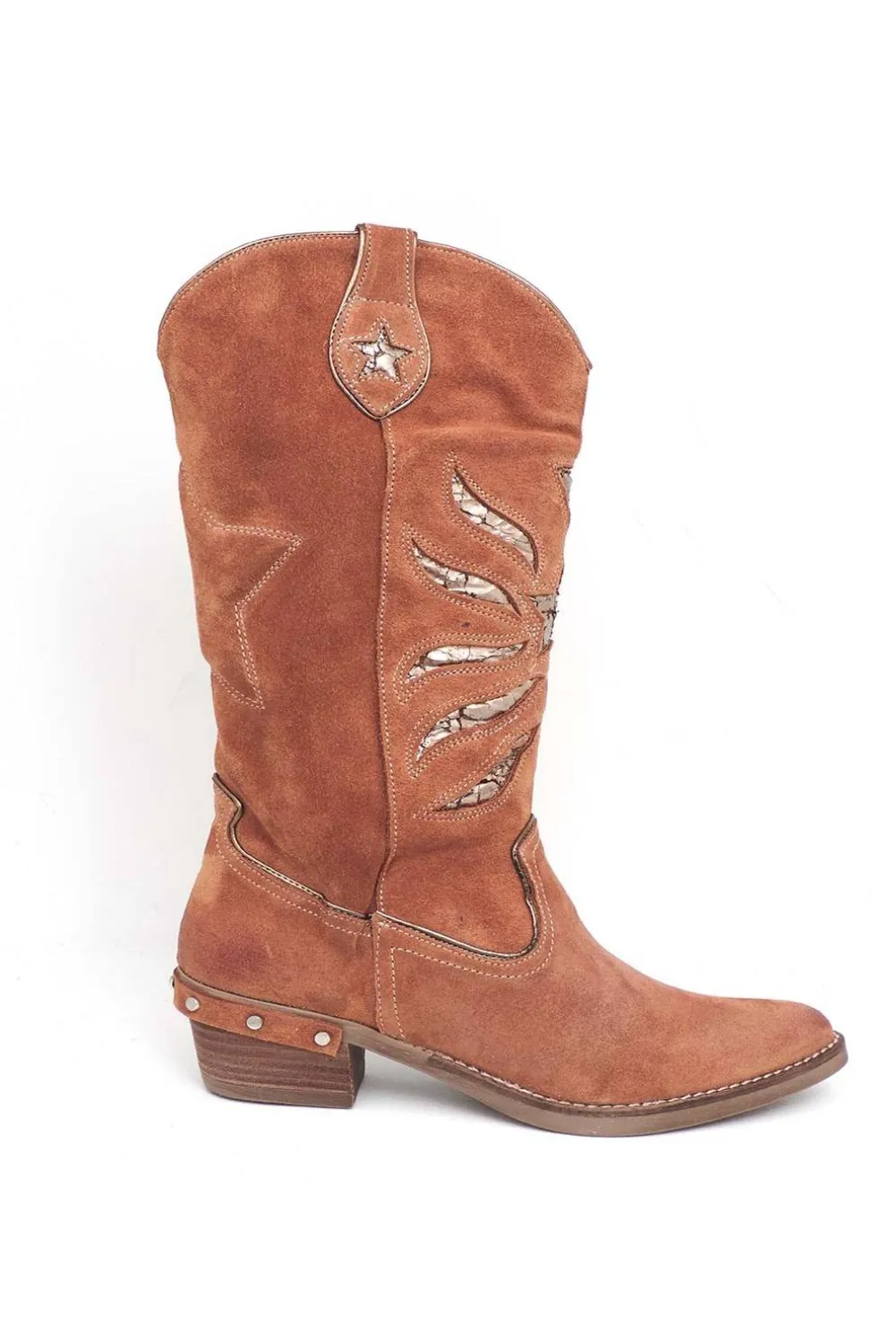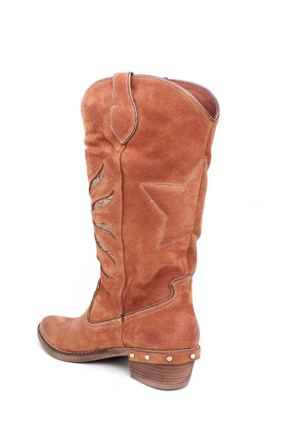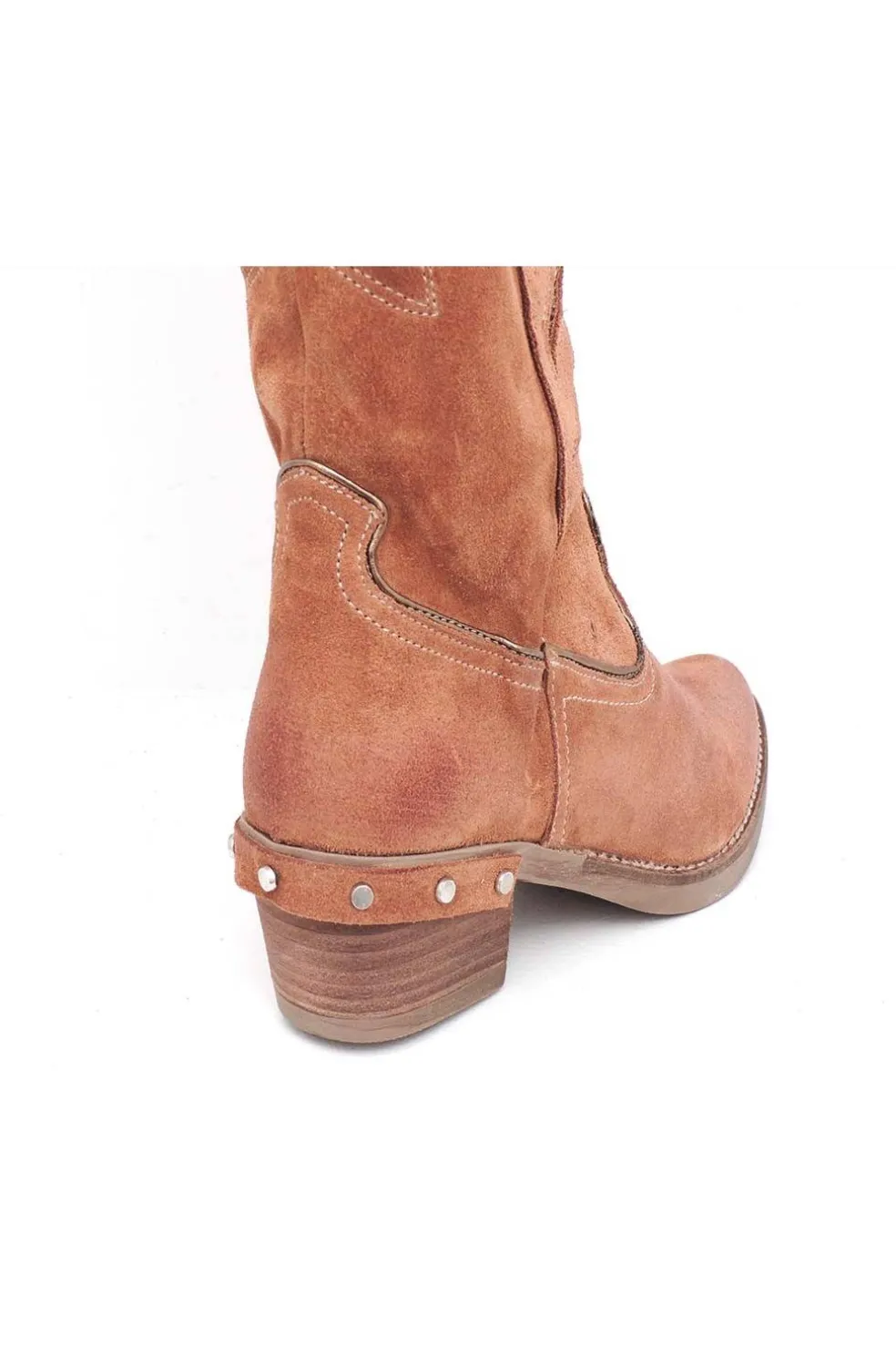 Tacón campero de 5 cm adornado con tachuelas.