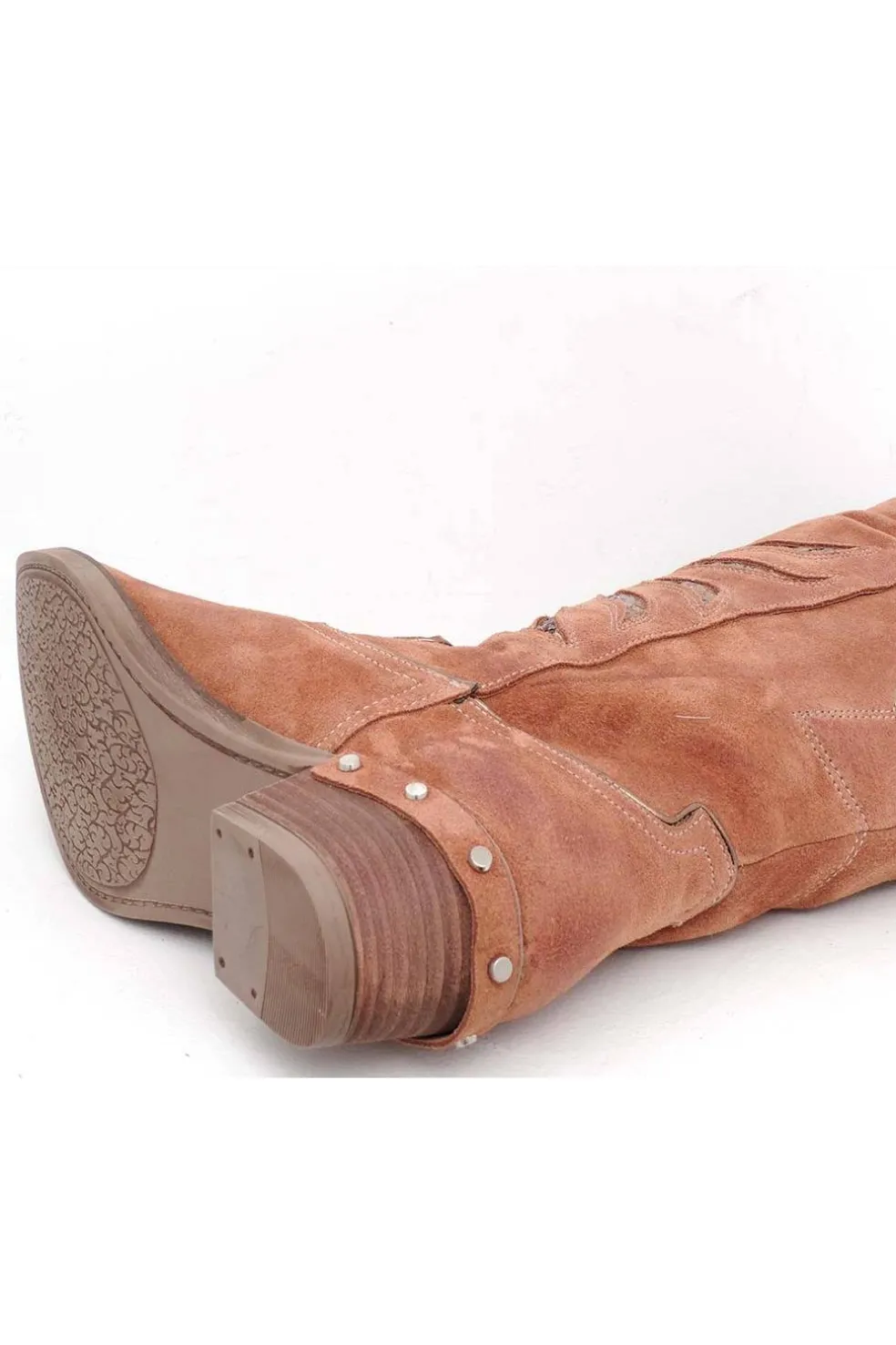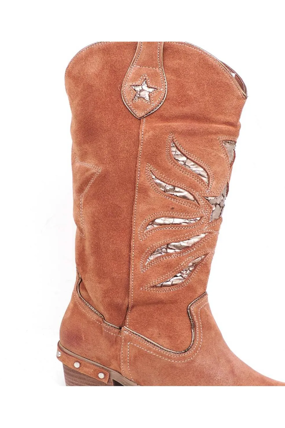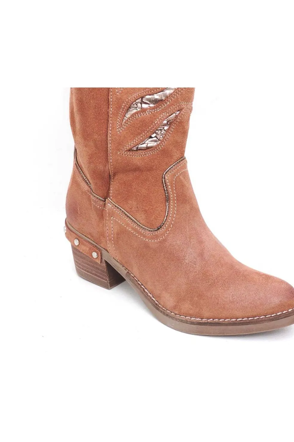 Tacón campero de 5 cm adornado con tachuelas.