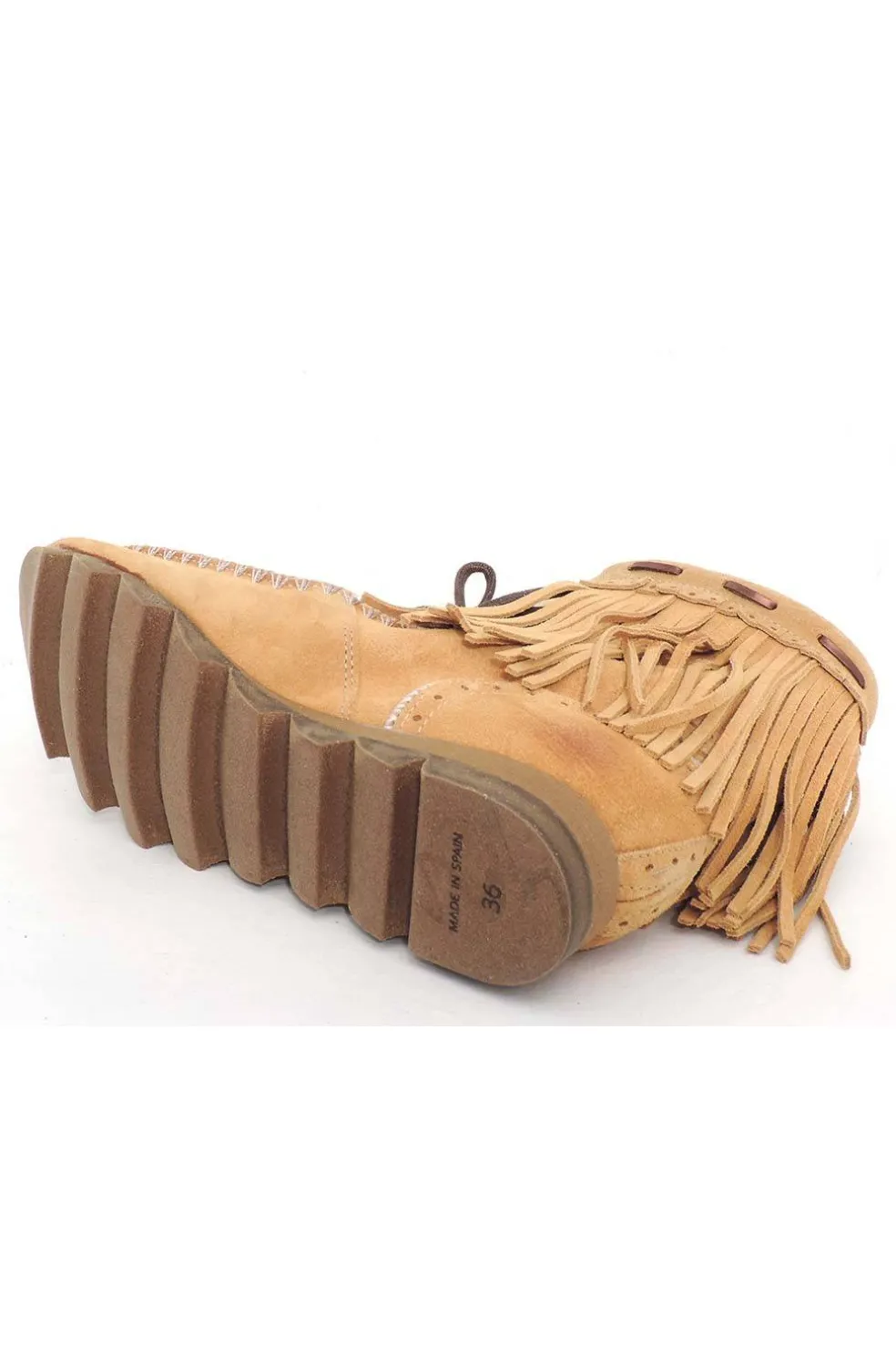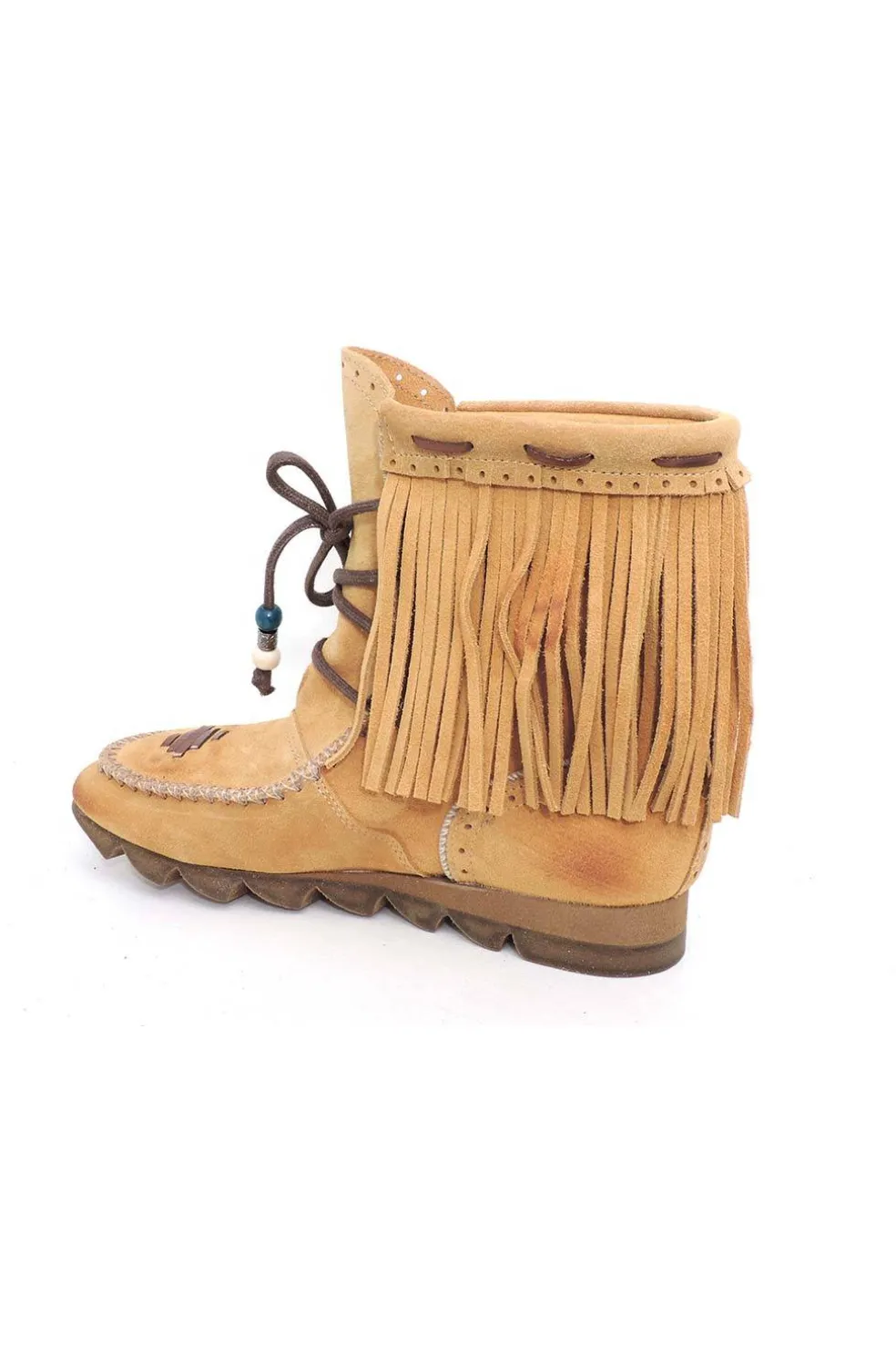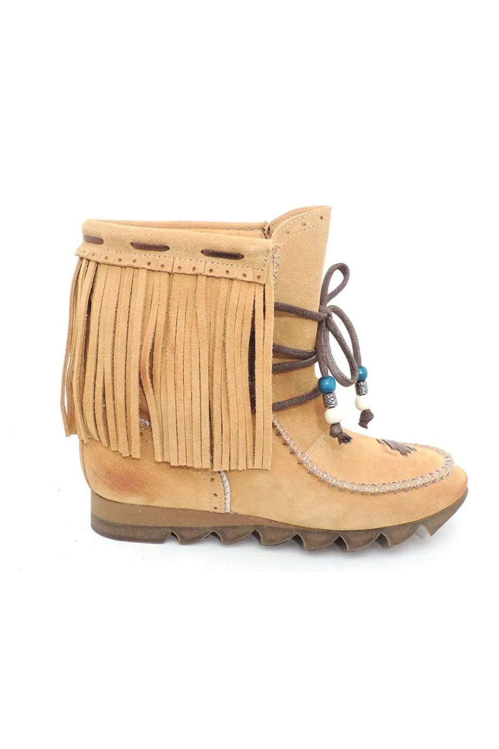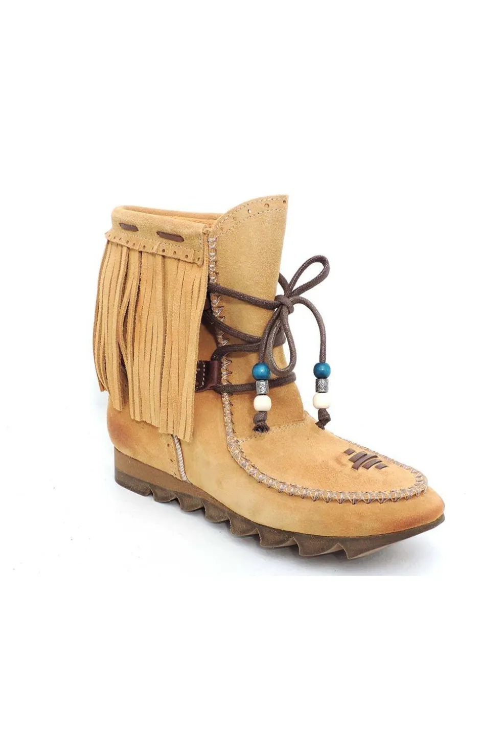 Botín de piel natural combinada en serraje y cuero con abalorios.