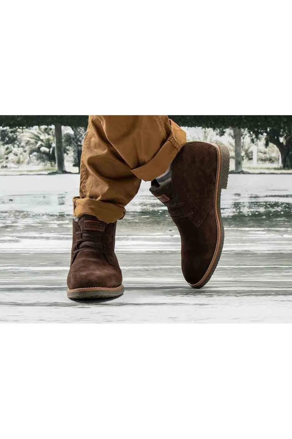 Botín de hombre con cierre de cordones, realizado en piel velour WATERPROOF, que repele el agua, y forro interior de PELO NATURAL 100%.