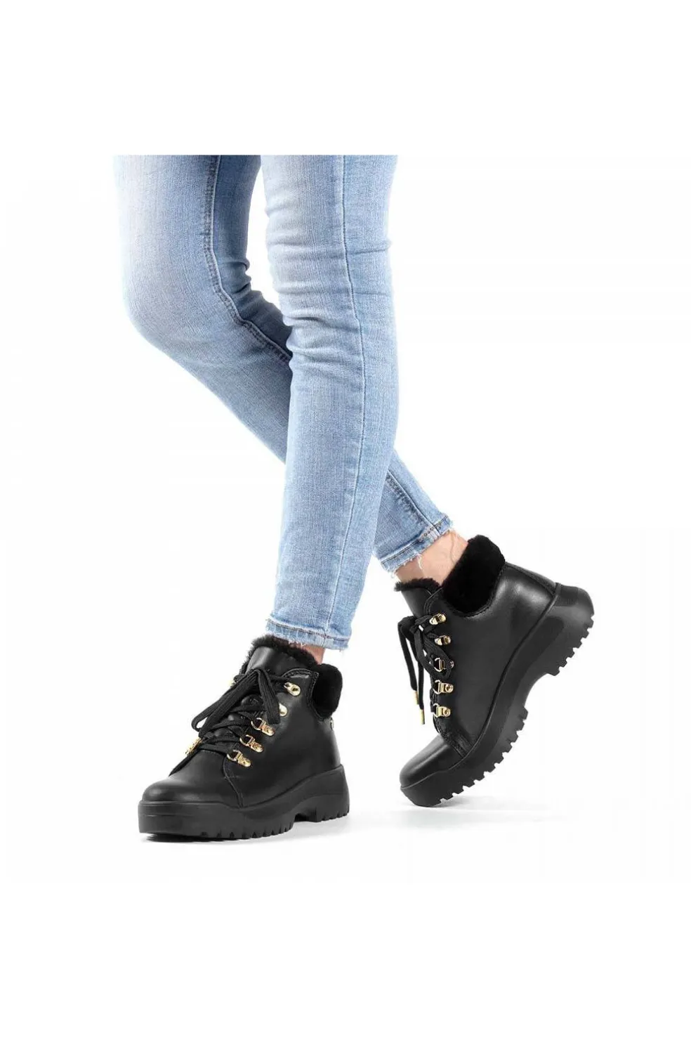Botines con rasgos únicos un invierno sin límites. Botín de mujer plano, realizado en piel napa waterproof y forro interior de pelo. Plantilla extraíble para mejor calce e higiene. Suela de goma, flexible, resistente y adherente. Tacón: 4,5 cm.
