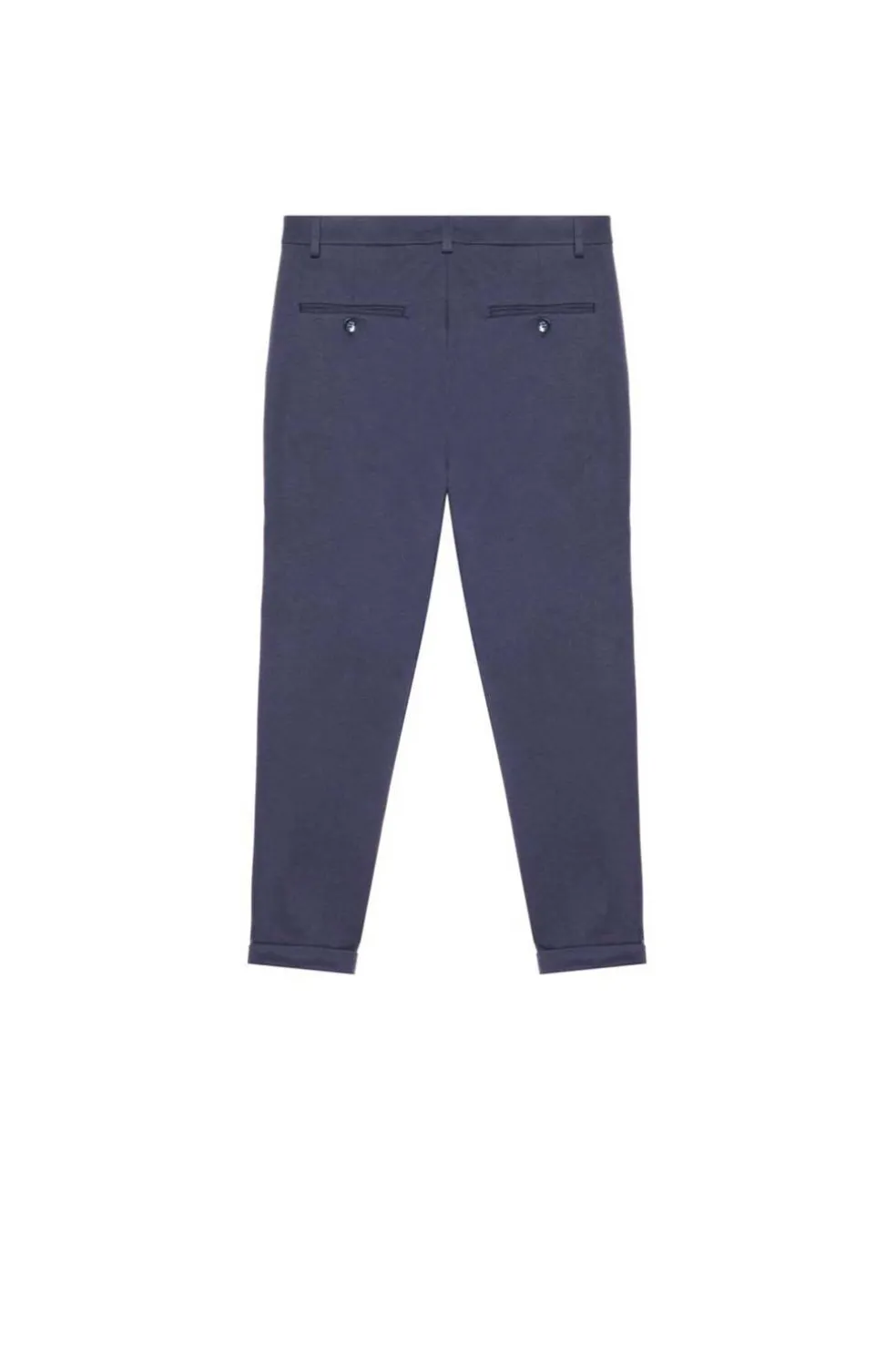 Actualiza tu vestuario urbano con estos pantalones tobilleros con dobladillo y bajo ajustado. Confeccionadas con un suave tejido mixto de viscosa y elástico en color liso, la prenda presenta un corte «skinny» con pliegue central y cierre de botón y cremallera. La placa metálica en la trabilla completa el modelo.