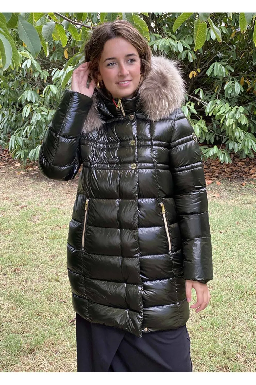 Parka verde de mujer de la marca Donjaz, que combina elegancia y confort en una prenda ideal para el invierno. Destaca por su cuello con pelo natural , que permite personalizar el estilo según la ocasión. Con dos prácticos bolsillos laterales para mayor funcionalidad y un cierre central con cremallera que asegura un ajuste perfecto, esta parka es una opción versátil y chic para cualquier armario.