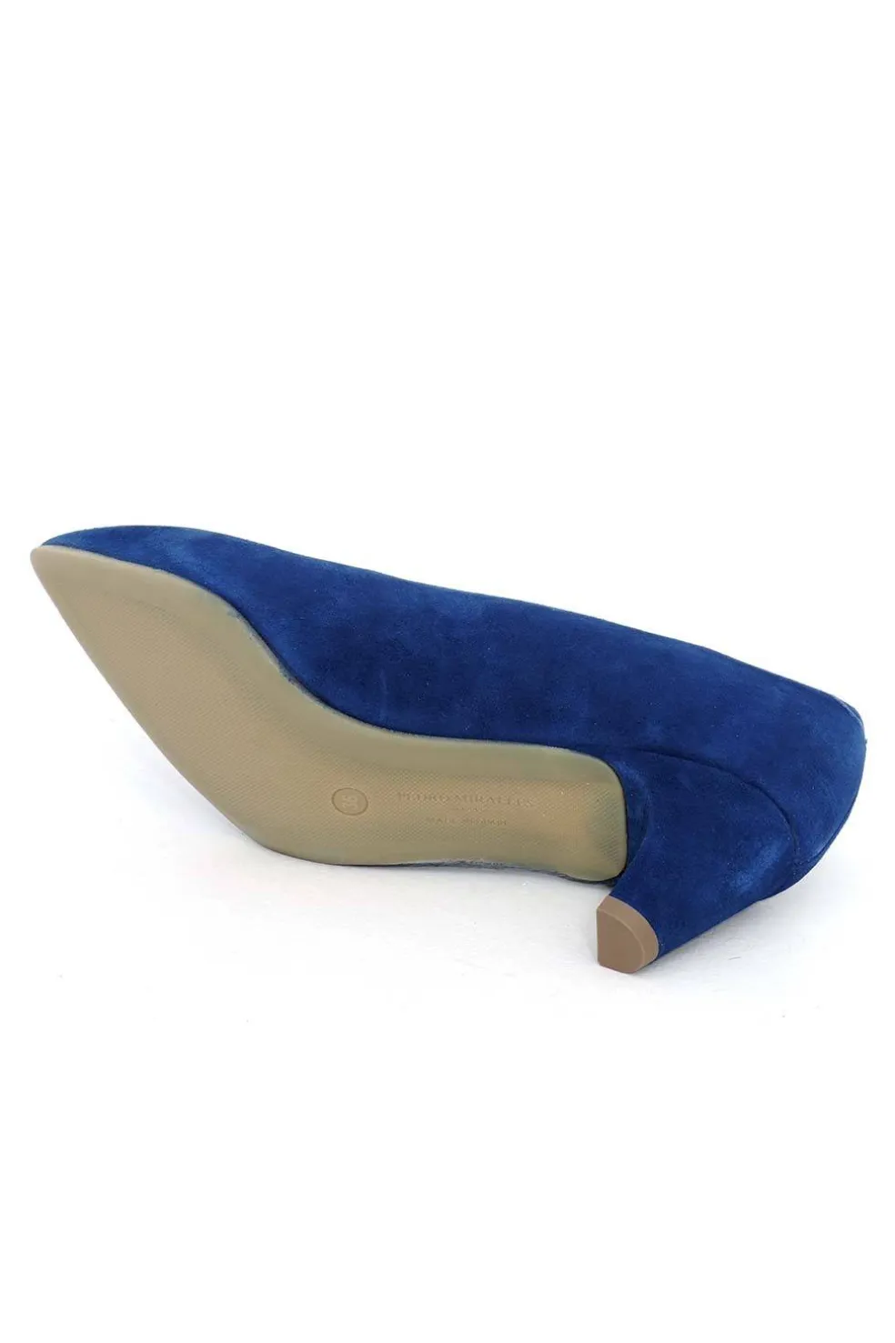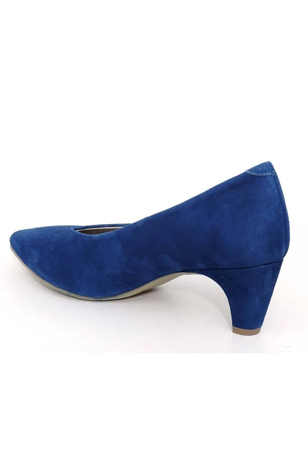 Zapatos corte salón en ante con escote recogido. Piso de goma antideslizante.