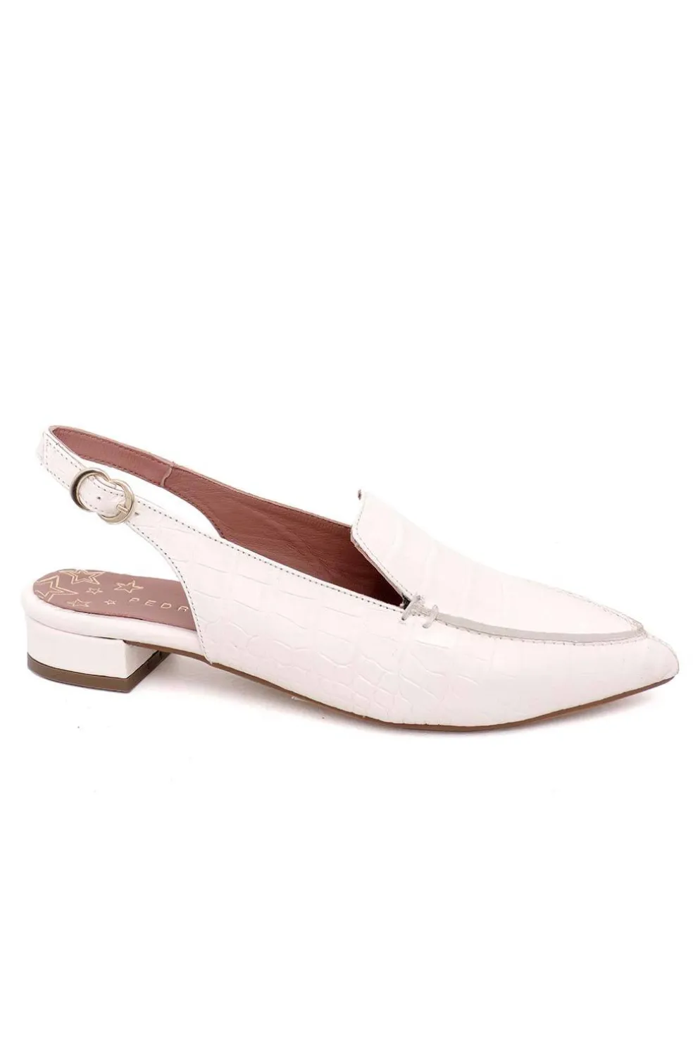 Bailarinas de piel con diseño cerrado de punta fina con cierre en el talón ajustable de hebilla. Tacón de 3 centímetos