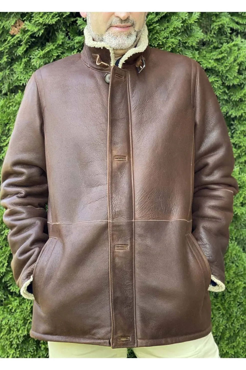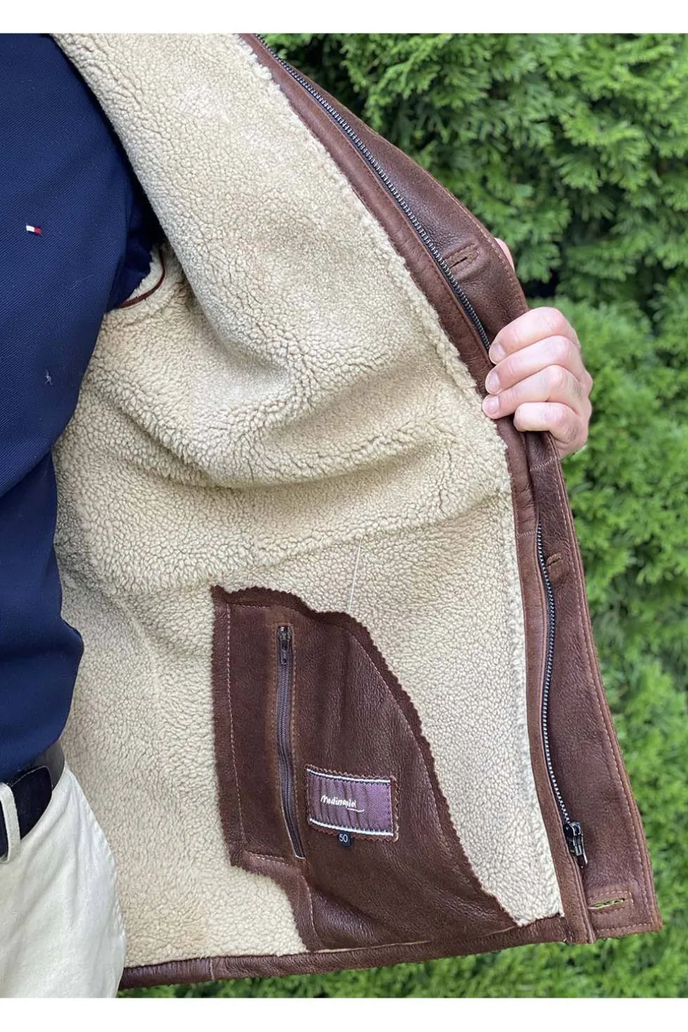 Chaqueta de piel vuelta natural, cierre con cremallera y botones. La piel es nacional y muy ligera y suave. La calidad excelente. Con tirador en la parte superior. Bolsillos interiores con cremallera.