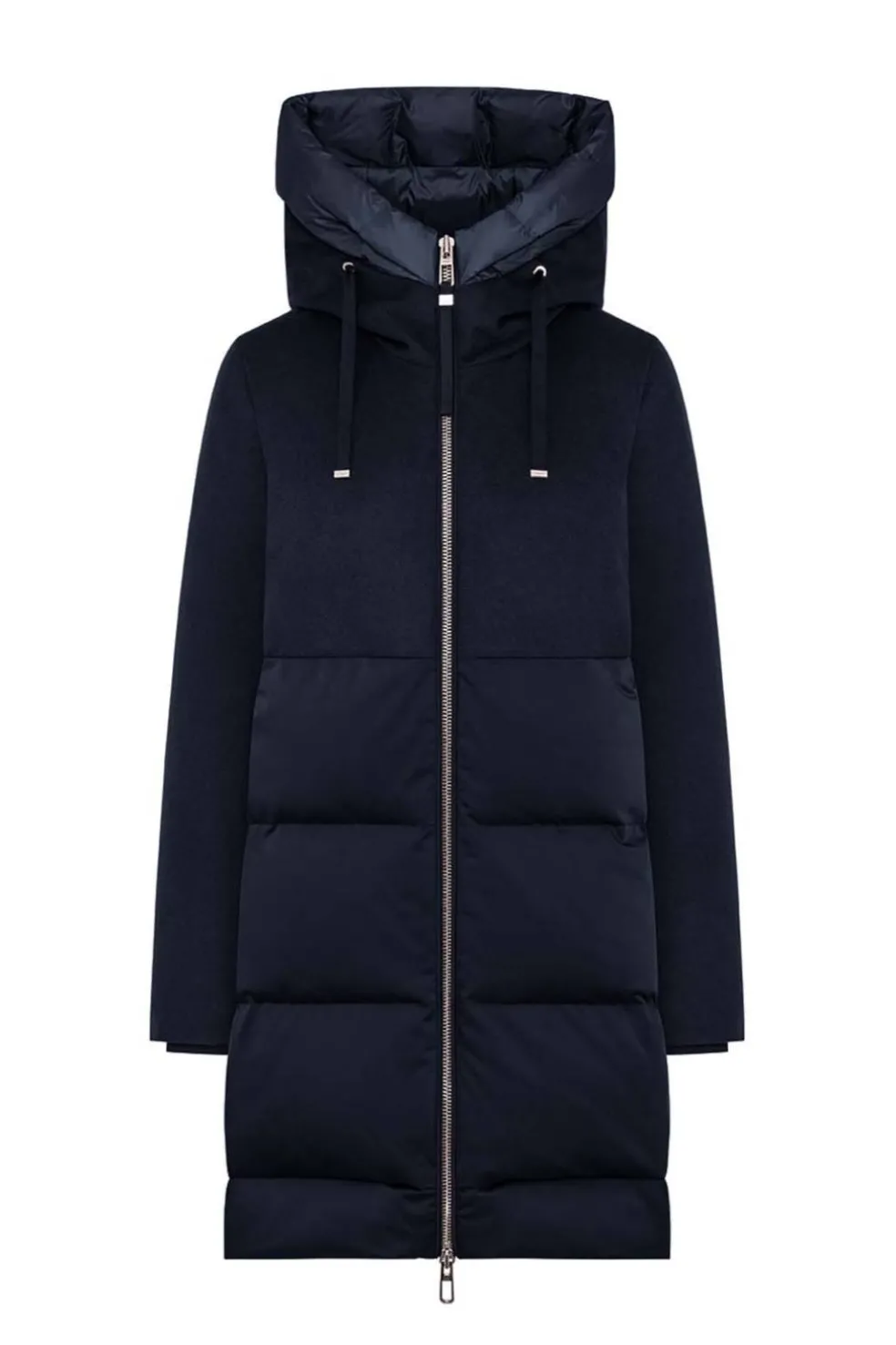 Tejido técnico elástico, impermeable y confortable, con estructura de satén y aspecto sedoso. El relleno de plumón garantiza un alto confort térmico y resistencia a la intemperie. Composición: 100 % poliéster . Relleno: 90 % plumón de pato, 10 % pluma.