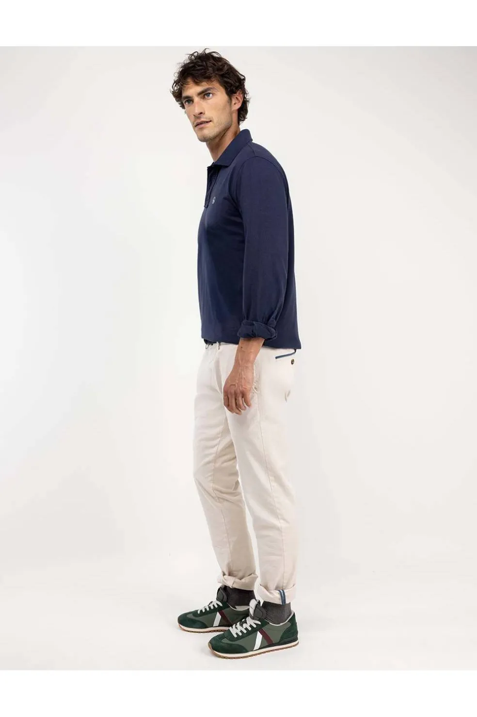 Polo de hombre confeccionado en tejido 100% algodón. Corte Regular Fit, cuello clásico y cierre con botones. Manga larga y logo bordado.