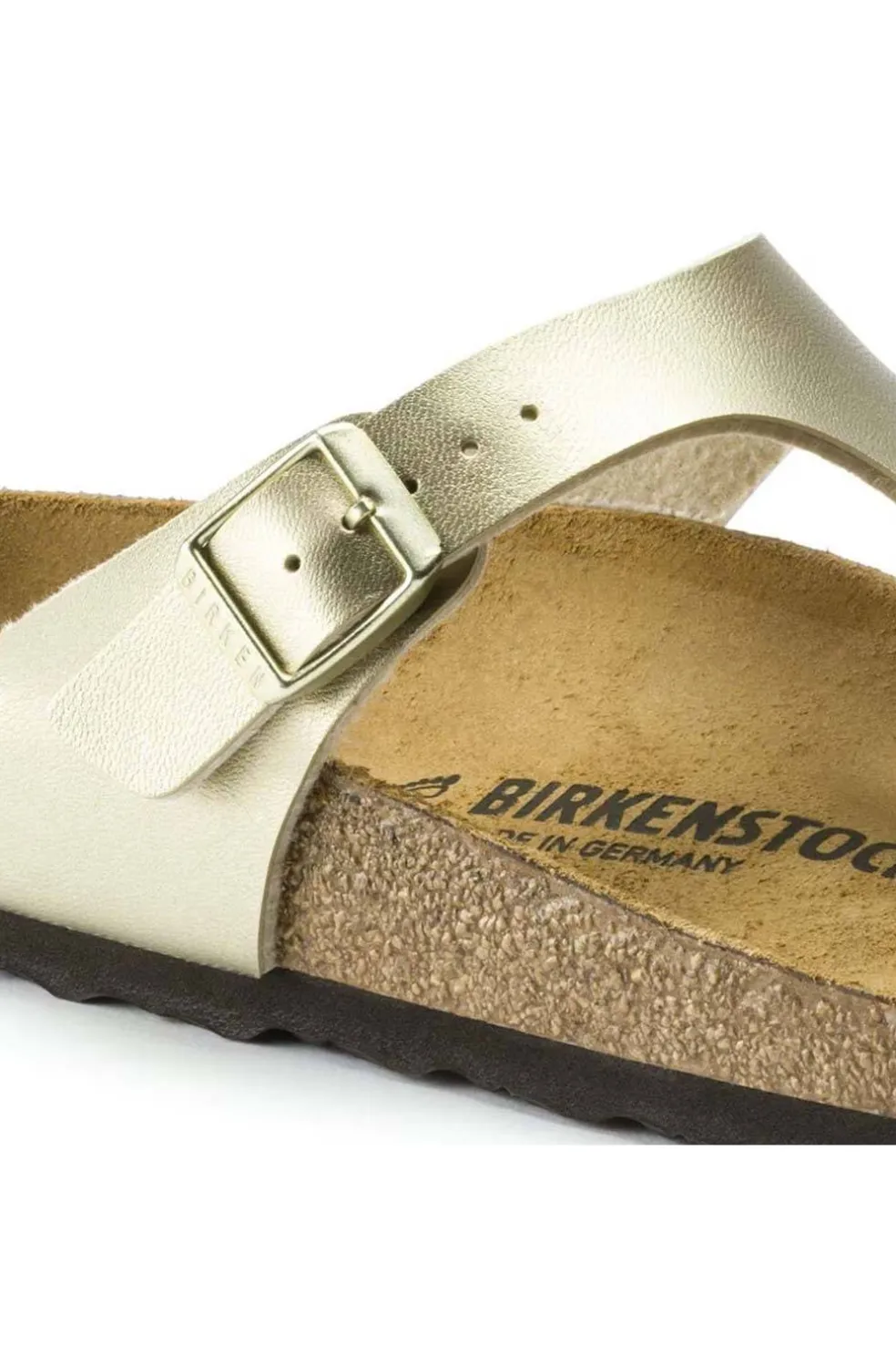 El modelo Gizeh de BIRKENSTOCK es un auténtico clásico y un todoterreno con mucha clase. Nuestra elegante sandalia de puente aúna una sujeción óptima con una estética minimalista y actual. En esta versión destaca por el efecto de brillo metálico. El material superior está compuesto por Birko-Flor®, un material sintético resistente y respetuoso con la piel.