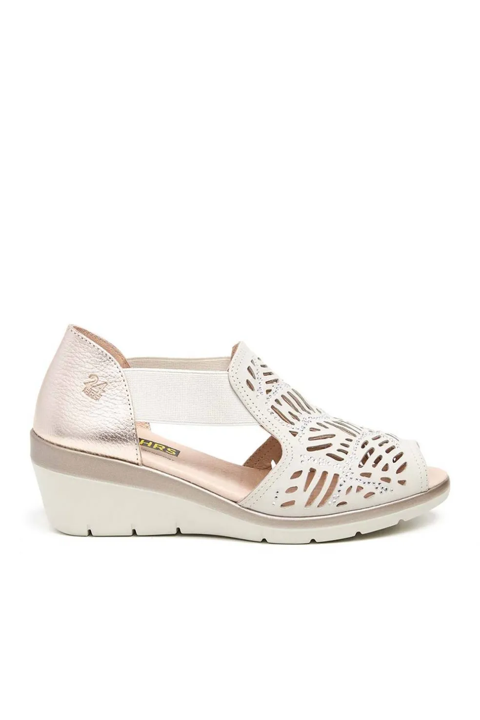 Peep toe mujer diseñado en piel combi beige con acabados en nobuck y detalles en pedrería. Elásticos laterales para facilitar el calzado, costuras vistas y marca grabada. Suela en PU con cuña a contraste de 6 cm y la mejor tecnología para que camines cómoda y con estilo 24HRS.