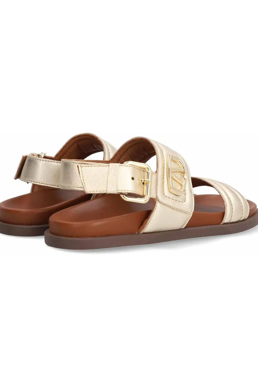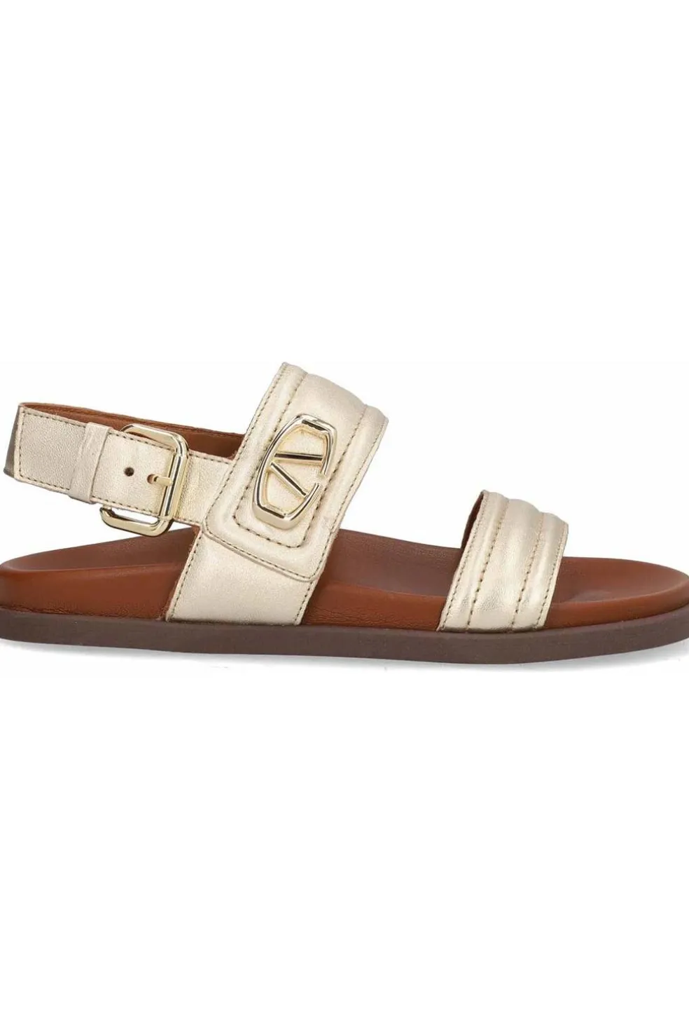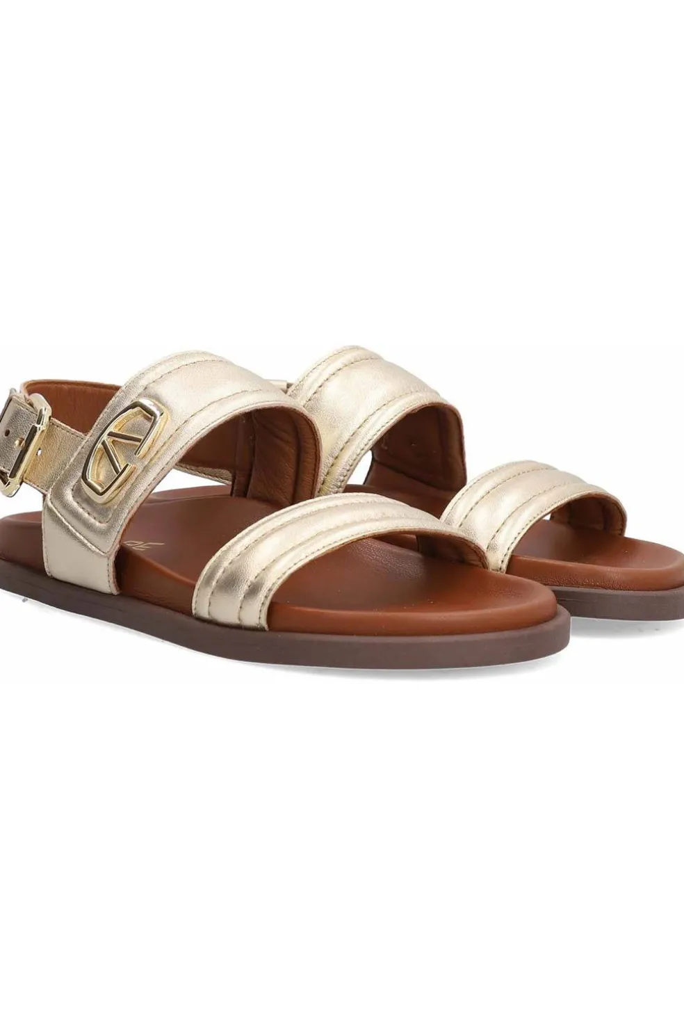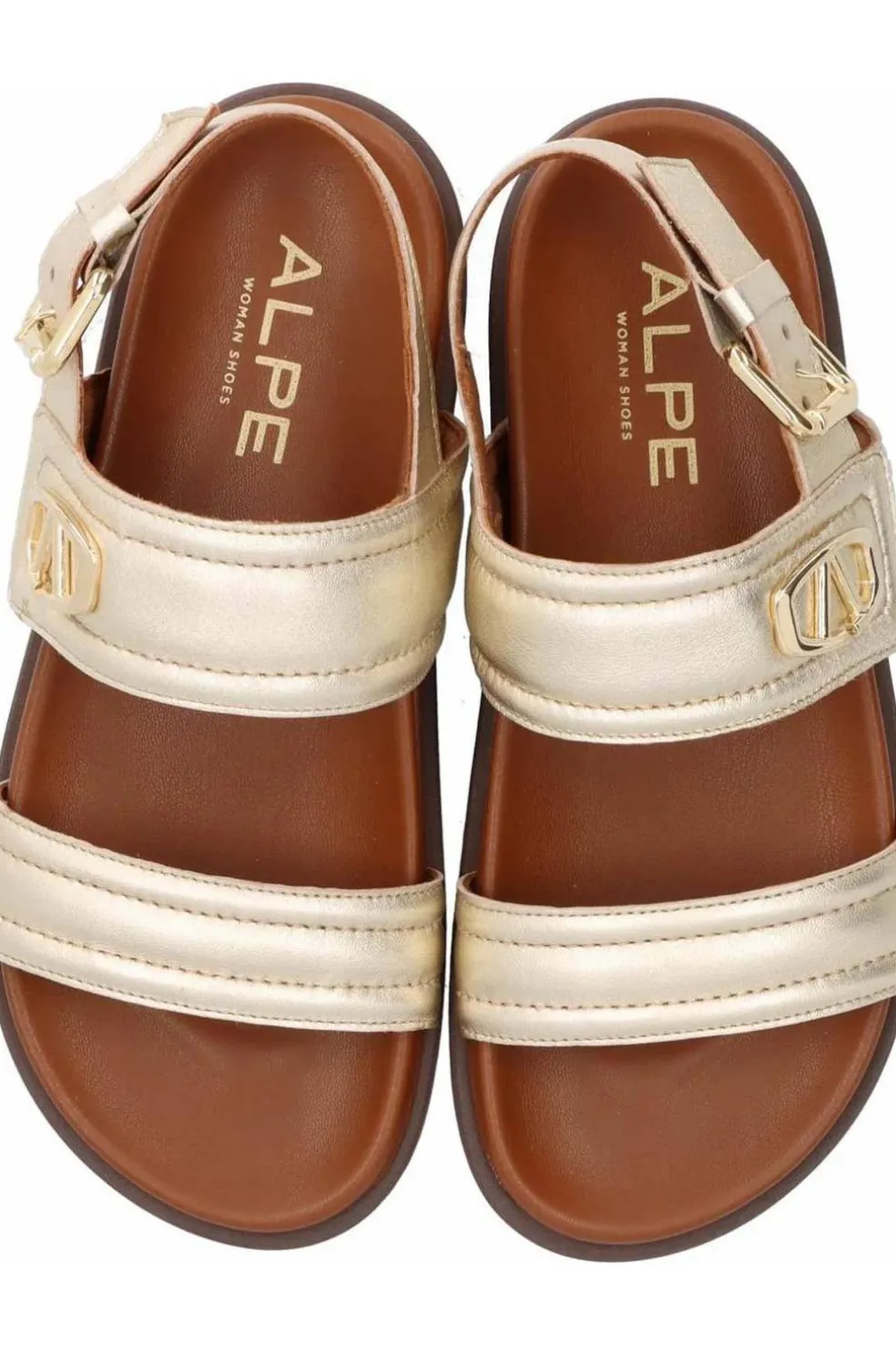 Sandalia para mujer ALPE ISABELA fabricado en piel (montecarlo) de color platino con plataforma de 1,5 cm, suela antideslizante y puntera cuadrada, con cierre mediante hebilla.