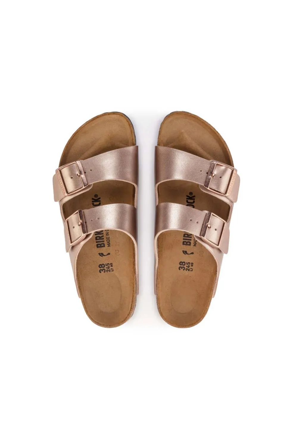 El modelo Arizona de BIRKENSTOCK es todo un clásico, convertido hace ya mucho tiempo en un artículo de moda imprescindible. La popular sandalia aparece aquí en una reinterpretación en estética reluciente, que proporciona al atuendo una elegancia garantizada. El material superior está hecho de Birko-Flor®, material sintético resistente y respetuoso con la piel, con recubrimiento de brillo satinado.