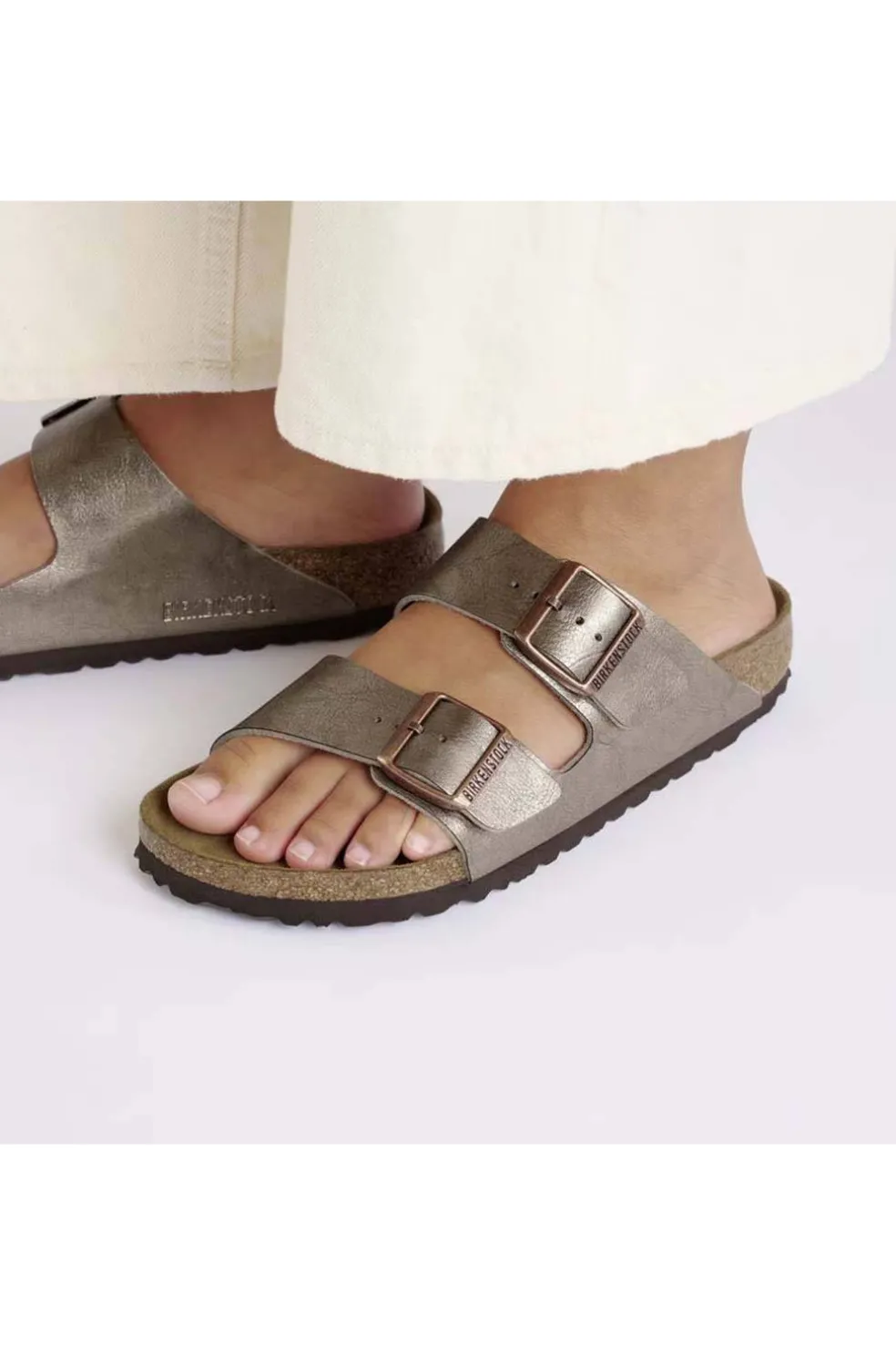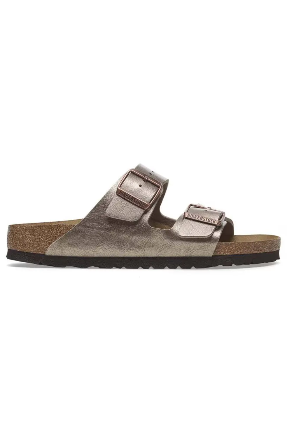 El modelo Arizona de BIRKENSTOCK es todo un clásico, convertido hace ya mucho tiempo en un artículo de moda imprescindible. La popular sandalia aparece aquí en una reinterpretación en estética reluciente, que proporciona al atuendo una elegancia garantizada. El material superior está hecho de Birko-Flor®, material sintético resistente y respetuoso con la piel, con recubrimiento de brillo satinado.