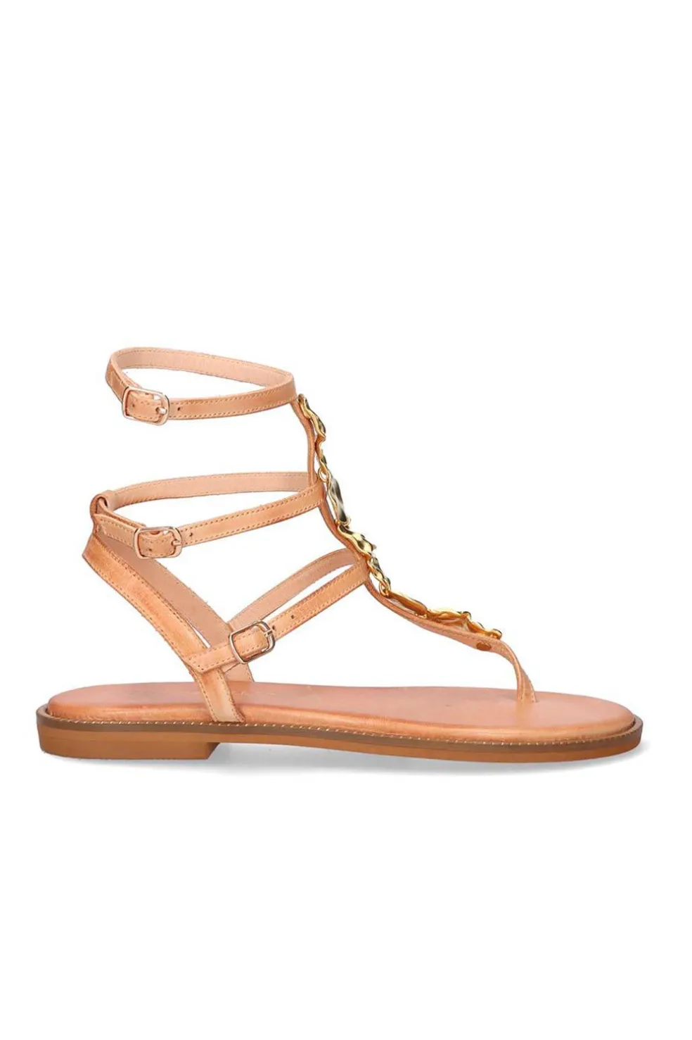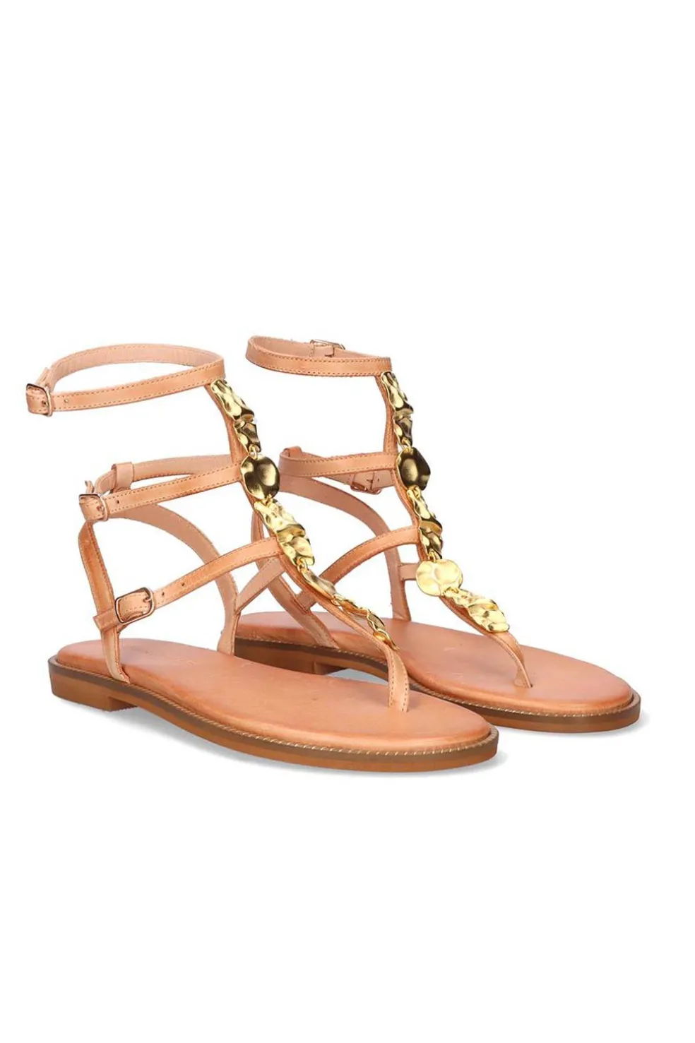 Esta temporada no quedes sin el modelo más buscado y hazte con estas preciosas sandalias de color natural. Con su color neutro y sus adornos de color dorado, este modelo es el básico perfecto para todos los looks que quieras crear.