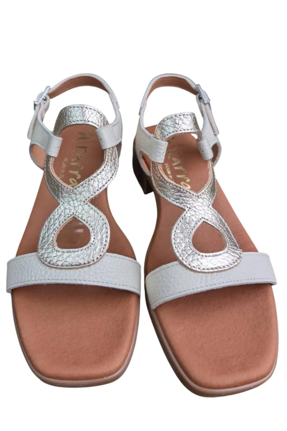 Sandalia Karralli en color hielo. Cuenta con una plantilla acolchada muy cómoda. Fabricada en España.