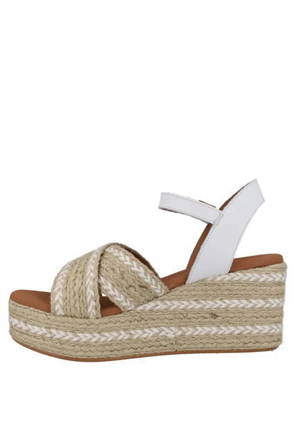 Benijo, combinando la rafia con detalles de su cuña con la piel de su pala cruzada, ¡te encantará para cada día! De media altura, para asegurar comodidad en cada pisada. Altura cuña: 8 cm