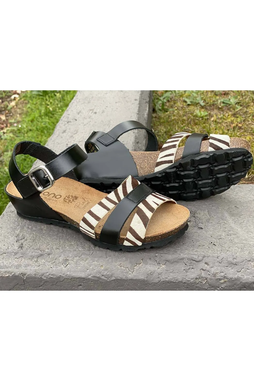 La sandalia de cuña MONACO 048 en blanco y negro, una sandalia cómoda, elegante y que aportará un toque de color a tus looks. Cierre de velcro y hebilla decorativa que permite el ajuste al pie, garantizando el máximo confort. Cuenta con una suela de 3,5 cm y una plantilla antideslizante que garantiza el agarre del pie. Está elaborada de manera artesanal en España, material de piel y uso de tintes vegetales respetuosos con el medio ambiente.
