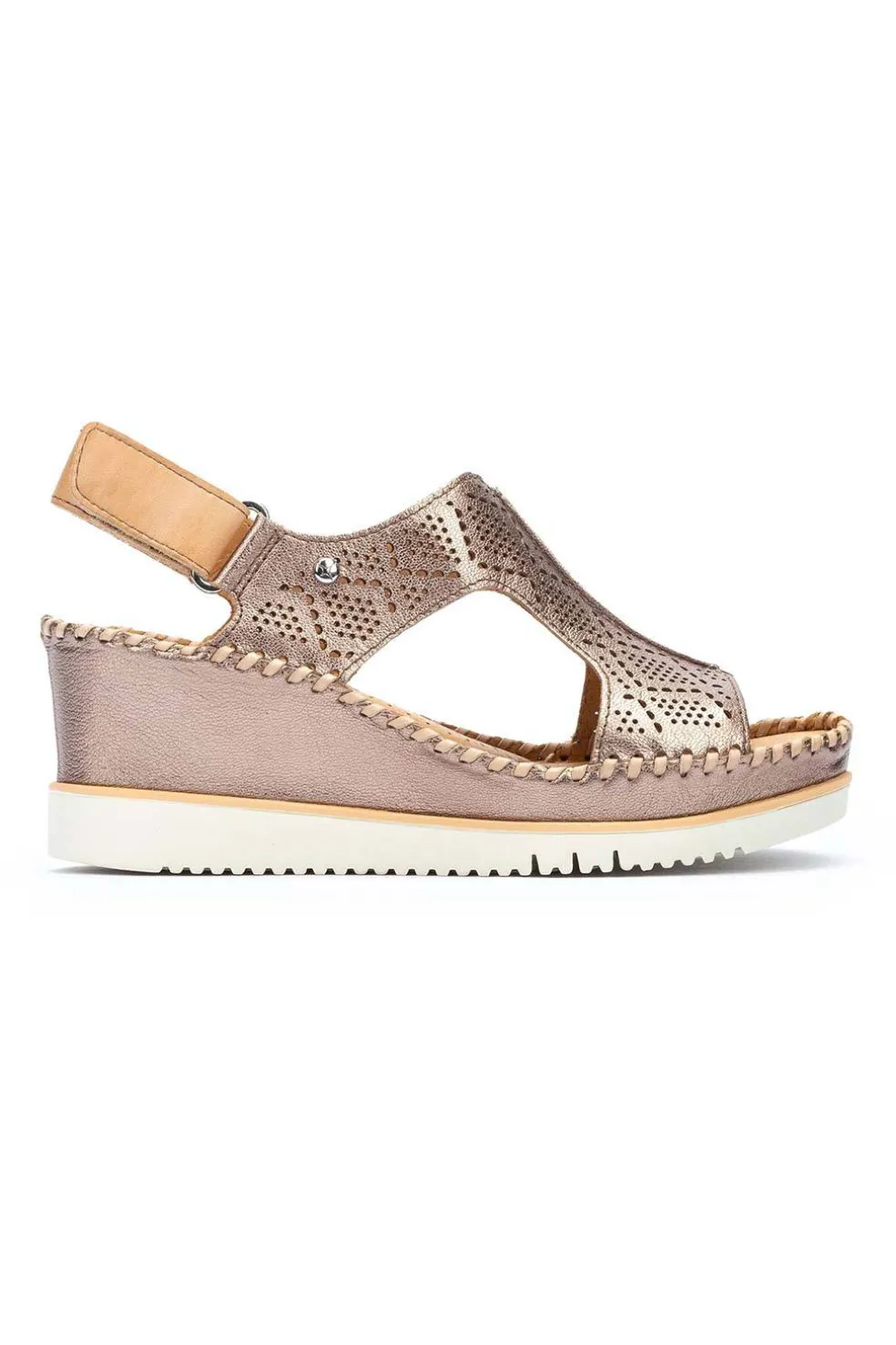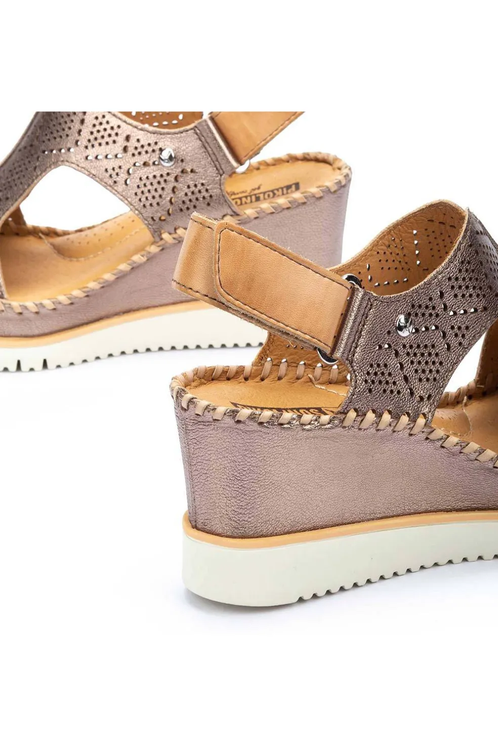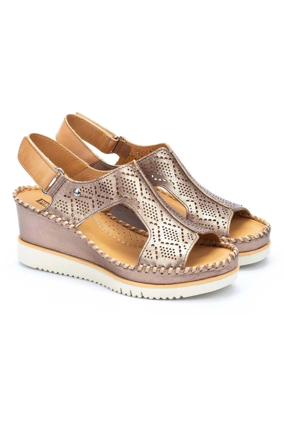 Vístelos de elegancia y confort con estas sandalias de piel picada que incorporan una cuña con suela extraligera y cierre adherente para una mayor comodidad,