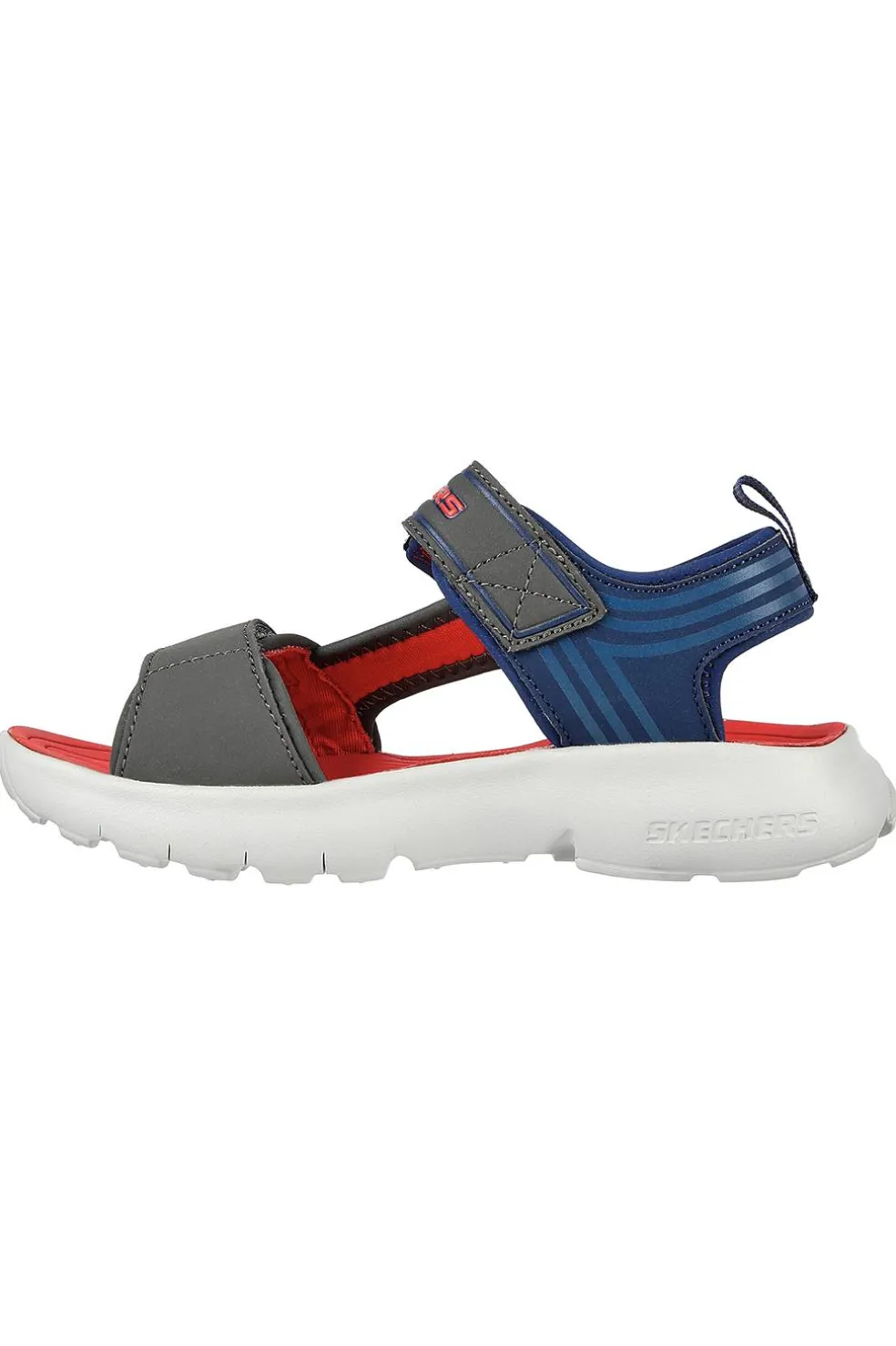 Disfruta del verano con la comodidad y el estilo de las Skechers Razor Splash. Estas sandalias de río ajustables con estilo deportivo presentan una parte superior sintética lisa con detalles de bloques de color, cierres de velcro y una cómoda plantilla con amortiguación.