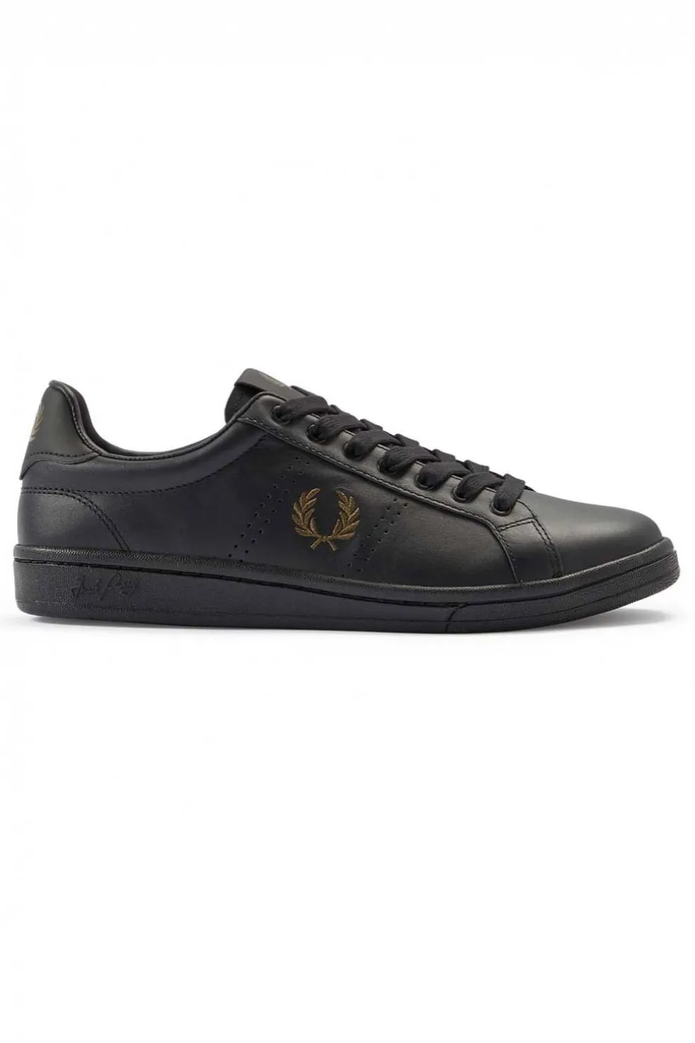 Empeine en piel flor suave / Talón y etiqueta en la lengüeta en piel/ Panel lateral perforado con la corona de laurel bordada / Suela de goma vulcanizada