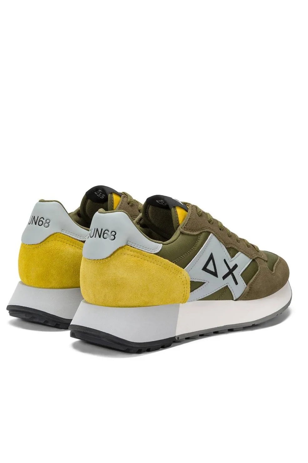 Descubre el deportivo de piel para hombre de la marca Sun68, un modelo que combina estilo y comodidad. Presenta un diseño en elegante color verde kaki con detalles en gris, blanco y amarillo, ideal para cualquier ocasión casual. Los logos bordados en blanco en el lateral añaden un toque distintivo y sofisticado. Con una altura de suela de 4 cm, estos zapatos ofrecen una elevación sutil sin comprometer la comodidad. Perfectos para quienes buscan un calzado versátil que complemente su armario diario.