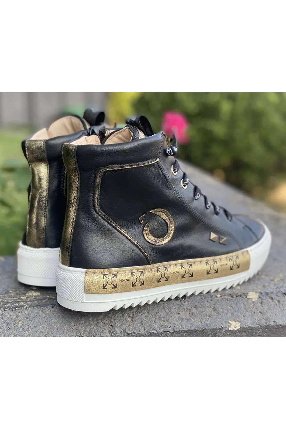 Sneaker alta Nemonic de piel interior y exterior con ajuste de cordones y cierre de cremallera. Cuenta con una plataforma de 3 cm y detalles en dorado.