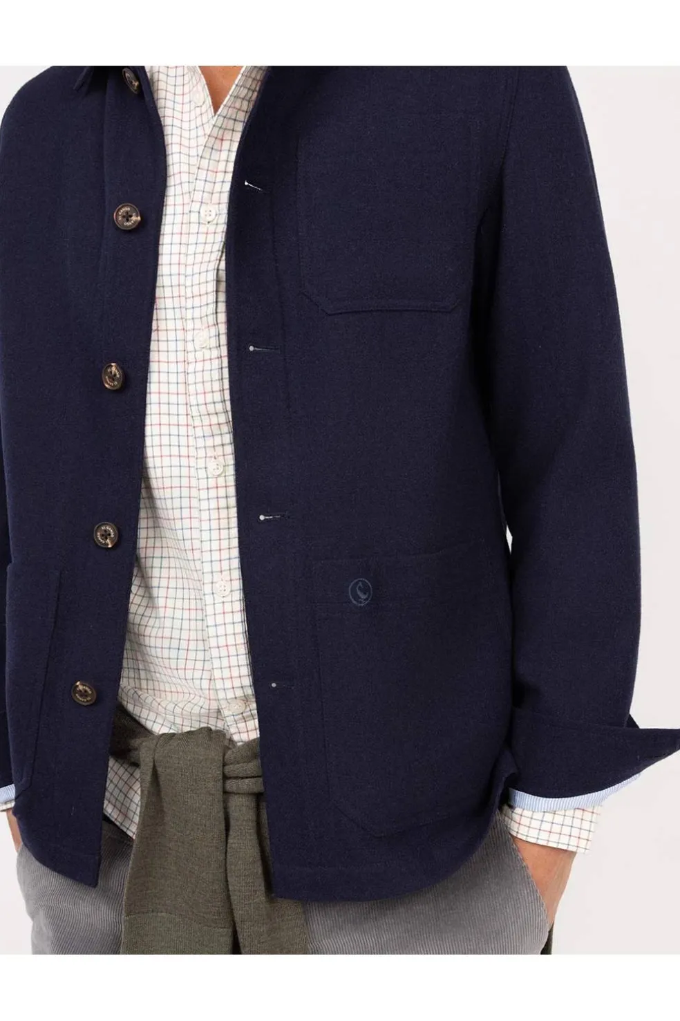 Sobrecamisa de hombre lisa con bolsillos tipo parche y cierre con botones. Corte Regular Fit, cuello clásico, manga larga y detalle de cinta de 3mm en el borde de la tapilla interior. Lleva logo bordado en uno de los bolsillos de parche.