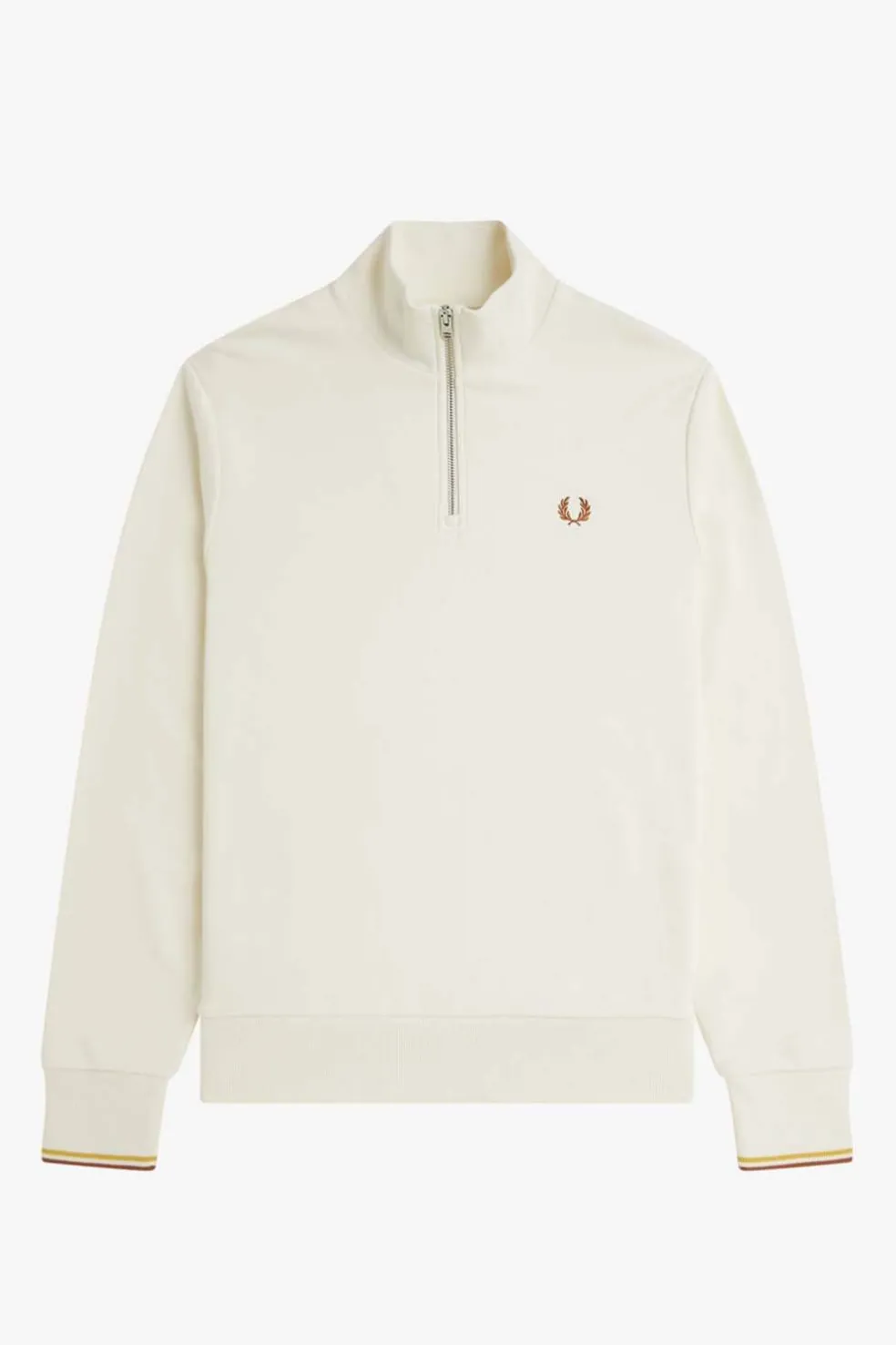 Nuestra sudadera con media cremallera, un modelo a medio camino de la ropa deportiva y la moda urbana, es una prenda básica y versátil, con un diseño sencillo minimalista. Un modelo con nuestra inconfundible corona de laurel bordada, puños con el ribete con dos franjas y un clásico cuello de chimenea que le aporta un toque elegante al conjunto.