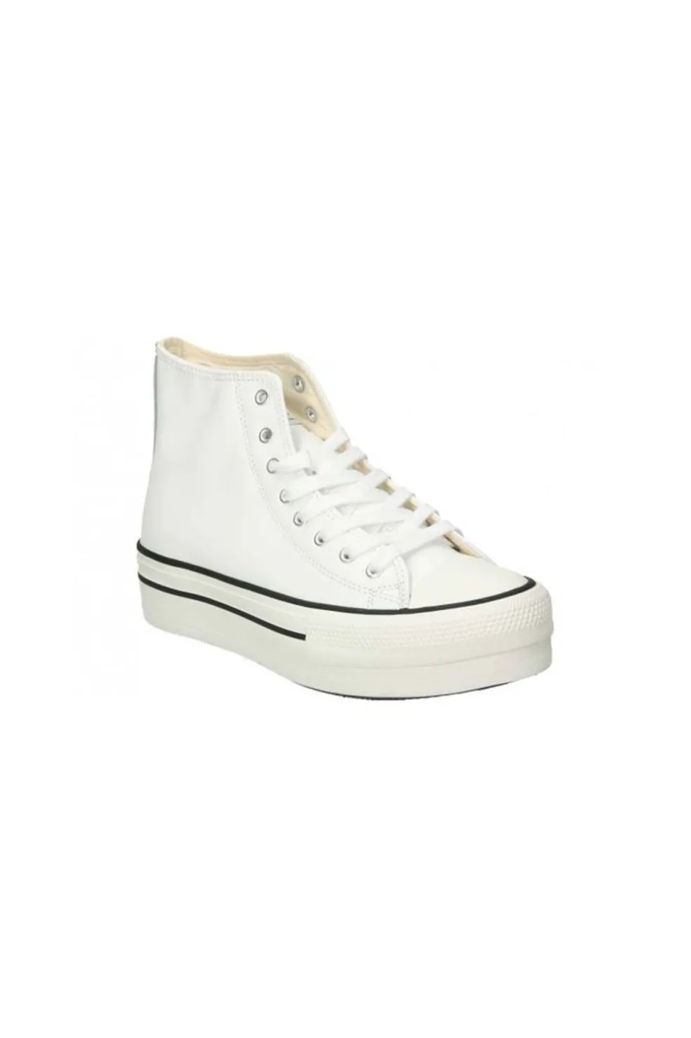 Vete a la moda con estas zapatillas altas de cuero imitación con plataforna doble .