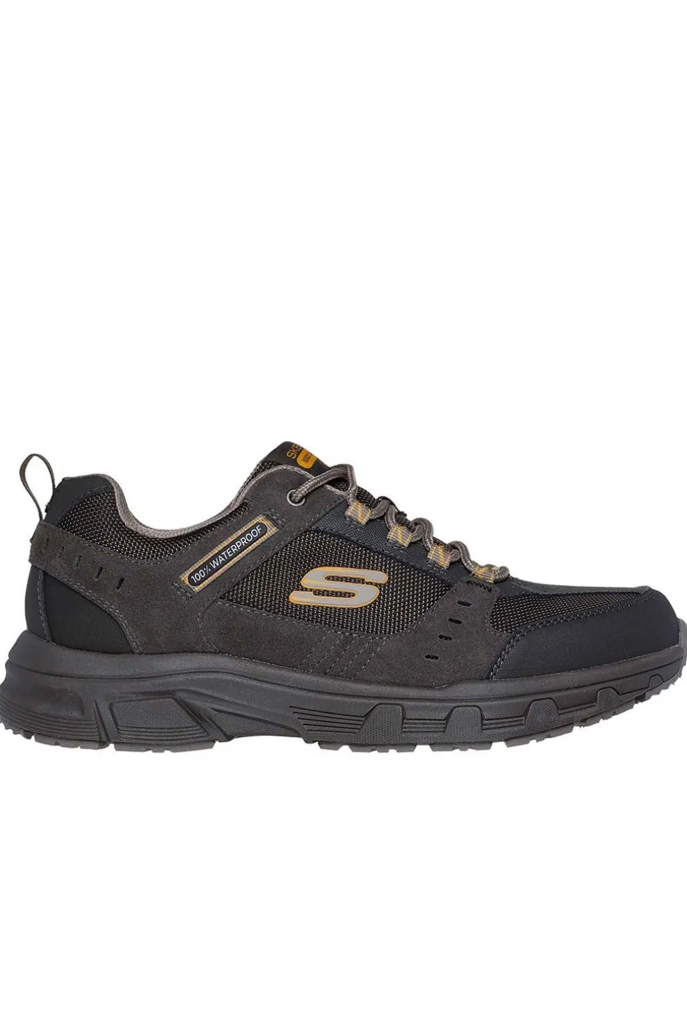 Sal a la calle llueva o truene con las Skechers Relaxed Fit®: Oak Canyon – Rydell. Este modelo 100 % Waterproof para actividades al aire libre presenta una espaciosa parte superior de malla, ante y material sintético con cordones y una plantilla con amortiguación Skechers Memory Foam™.