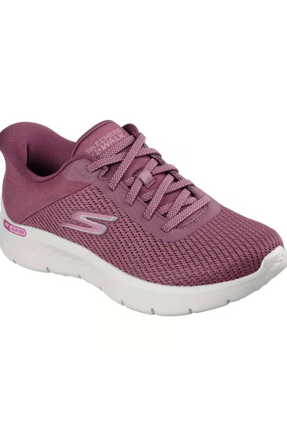 Disfruta de la comodidad y la amortiguación que te ofrece la Skechers Hands Free Slip-ins®: GO WALK Flex – Carla. Diseñado con nuestro sistema exclusivo Heel Pillow, este modelo slip-on deportivo vegano cuenta con una parte superior de malla deportiva y termosellada con cordones elásticos fijos, una cómoda plantilla con amortiguación Skechers Air-Cooled Memory Foam™ y amortiguación ligera ULTRA GO en la media suela con Flex Pillars para mayor apoyo.