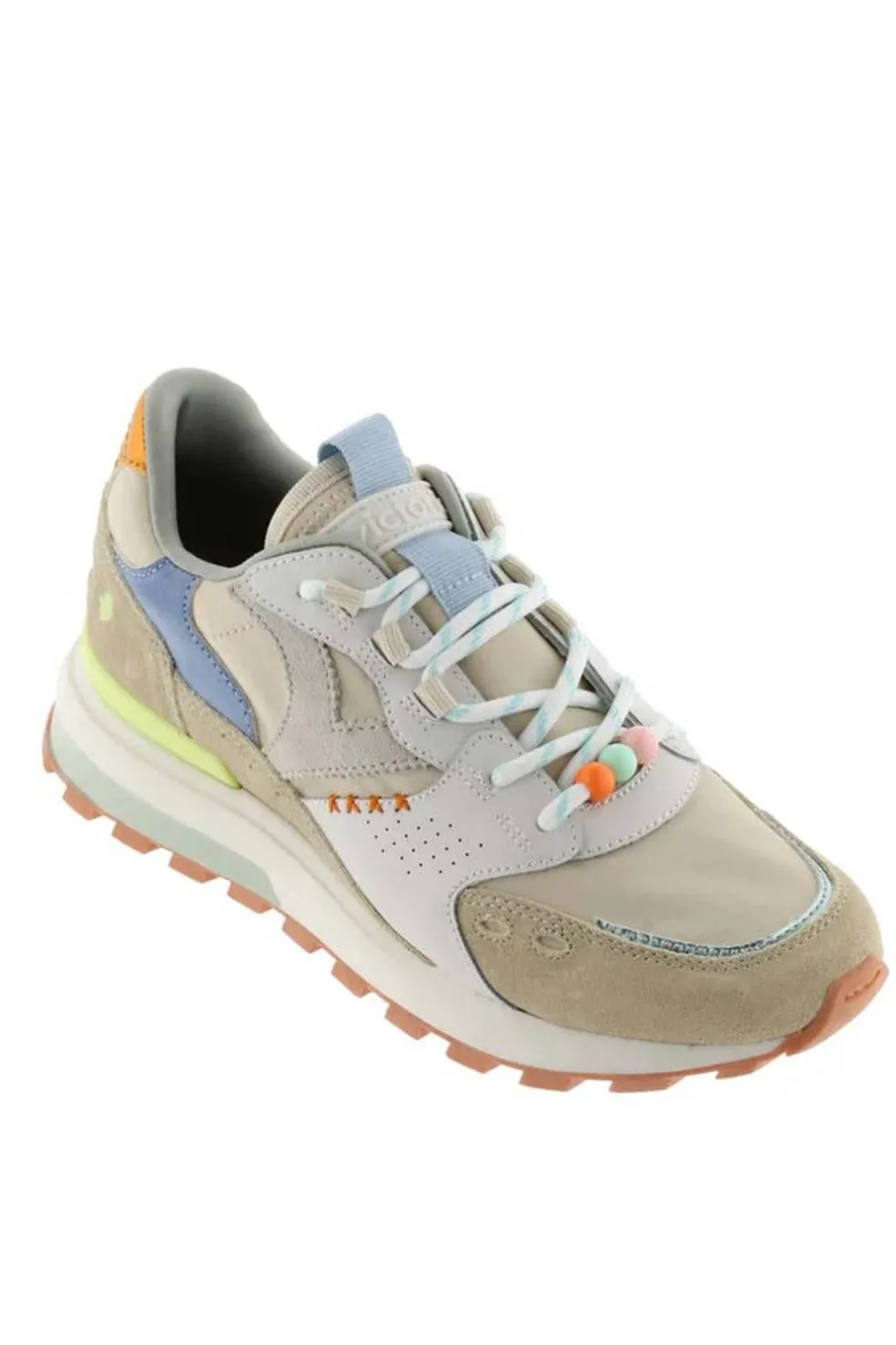 Sneakers multicolor para mujer, en tonos pastel, diseñadas para aportar suavidad y estilo a cualquier look. Incorporan detalles únicos en pespuntes, abalorios decorativos y cordones redondeados que le añaden un toque distintivo. Su mezcla de colores y texturas hace de estas sneakers una opción versátil y moderna para el día a día.