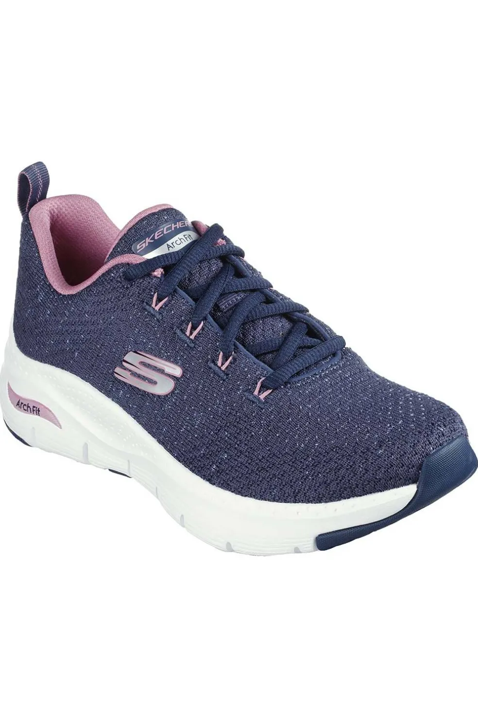 - Detalles del logotipo Arch Fit en la lengüeta y el lateral de la media suela