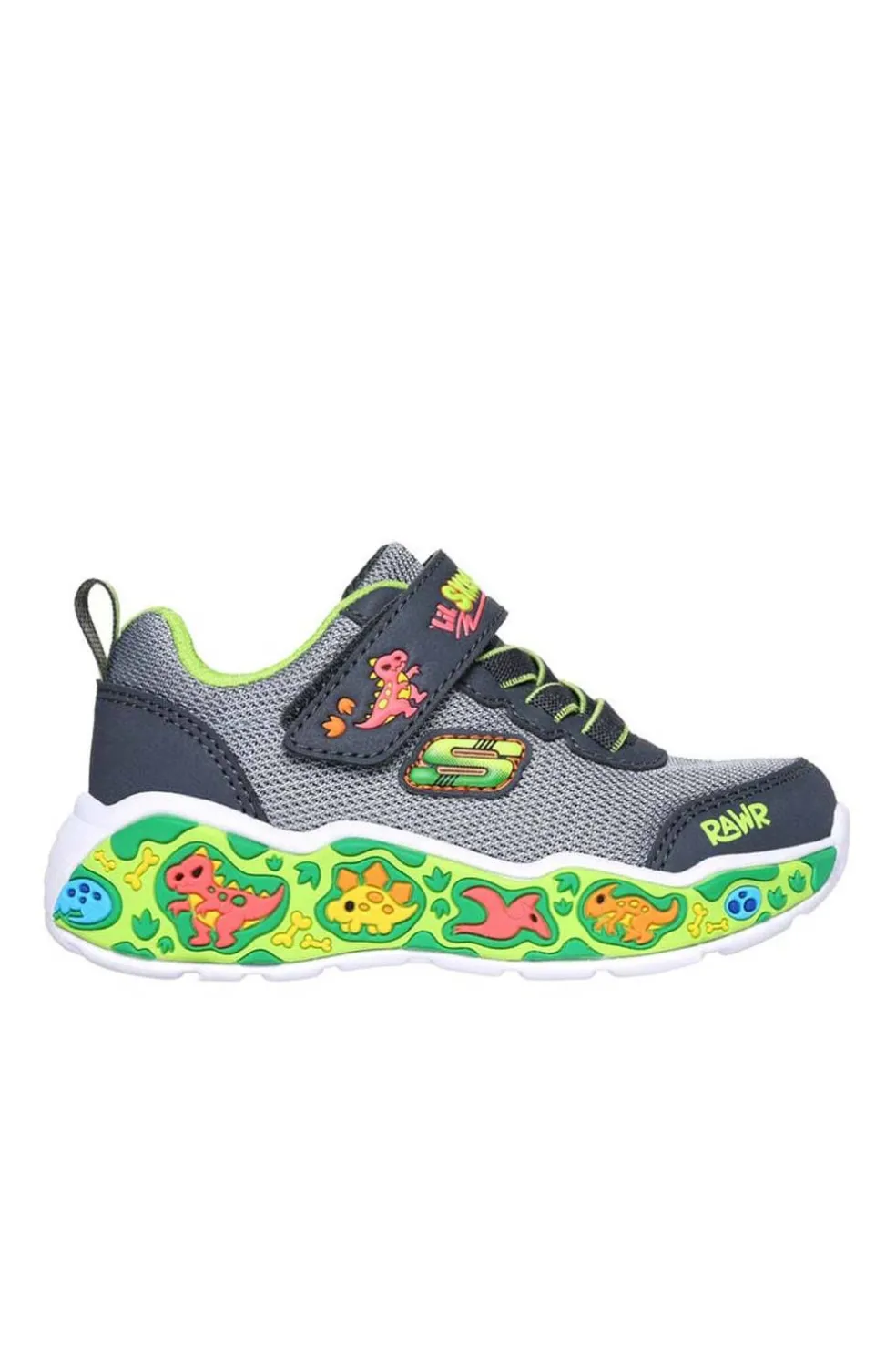 Los más pequeños disfrutarán de comodidad y diversión con la Skechers Play Scene. Este cómodo modelo con motivos temáticos presenta una parte superior de malla y material sintético, cordones elásticos, correa ajustable en el empeine y una divertida media suela con dibujos también temáticos.