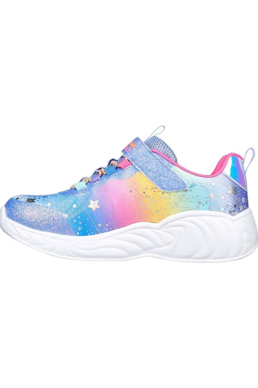 Ilumina tu día con la magia del unicornio con las Skechers S-Lights: Unicorn Dreams. Estas zapatillas con luces presentan una parte superior sintética degradada con acabado brillante y una cómoda plantilla con amortiguación.