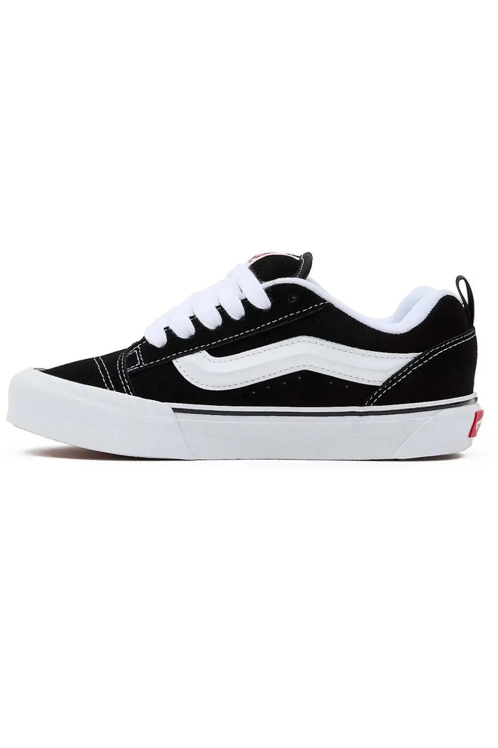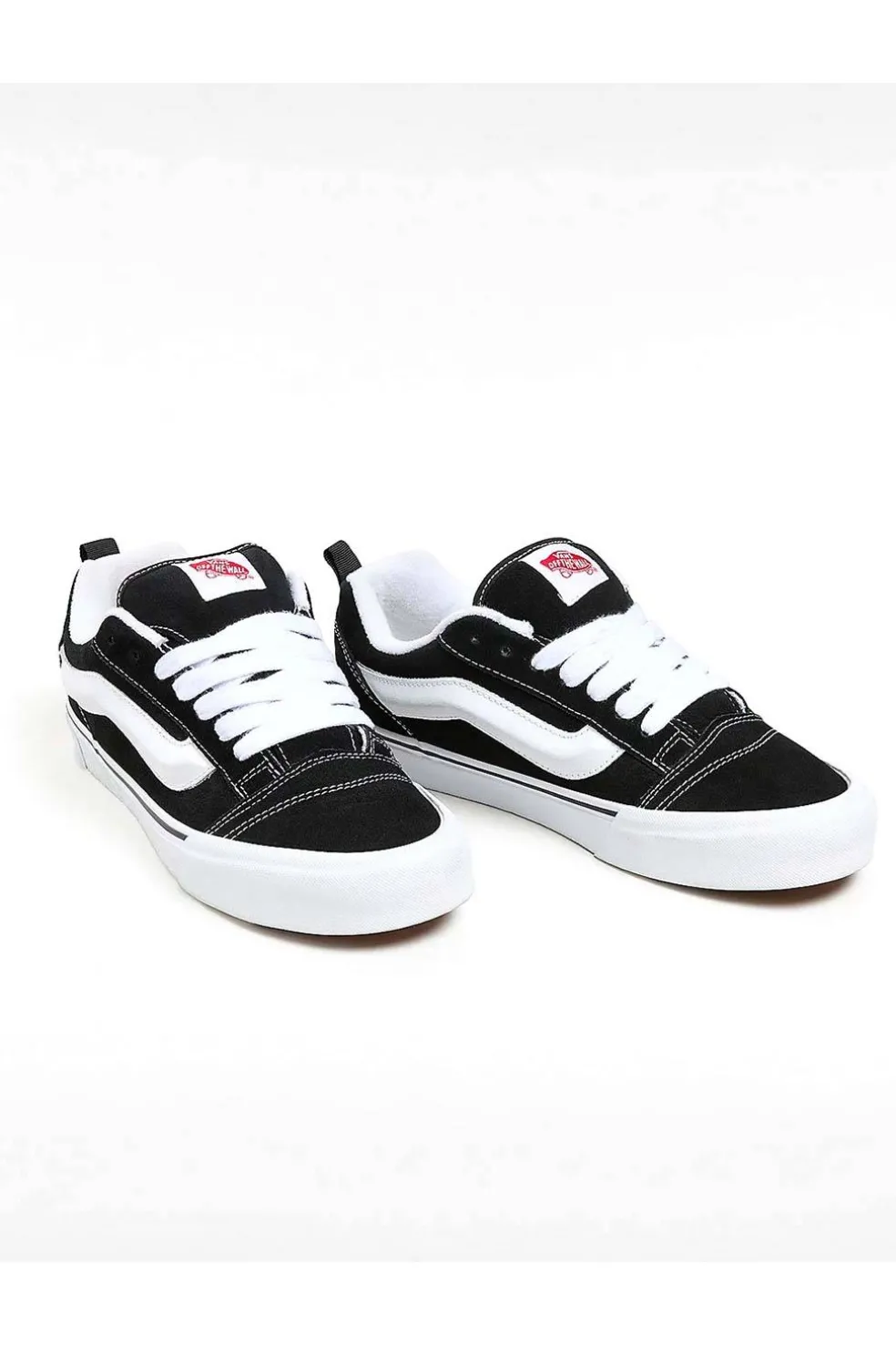 Las Knu Skool son un modelo reeditado de los años 90, cuando las zapatillas de skate tenían un diseño con extra de acolchado. Esta silueta de caña baja, confeccionada con resistentes palas de ante, presenta un diseño con una gran lengüeta y un cuello acolchados, lo que le otorga un aspecto exagerado que contrasta con el modelo Old Skool original.