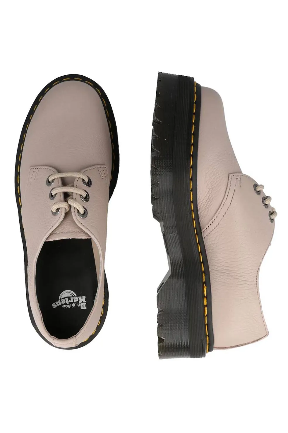 Una plataforma imponente. Fáciles de llevar en el día a día. Este nuevo diseño combina nuestra reconocida plataforma Quad con una innovadora estructura ligera formada por dos partes: una entresuela ligera de EVA y una suela de PVC con tacos pronunciados de alta durabilidad que aportan menos peso y más actitud. DM´s a todo volumen. Estos zapatos poseen todo el ADN de Dr. Martens, desde el inconfundible patrón del piso de la suela, al clásico pespunte amarillo y el tirador del talón con el logo AirWair. Tamaño plataforma: 4,5 cm