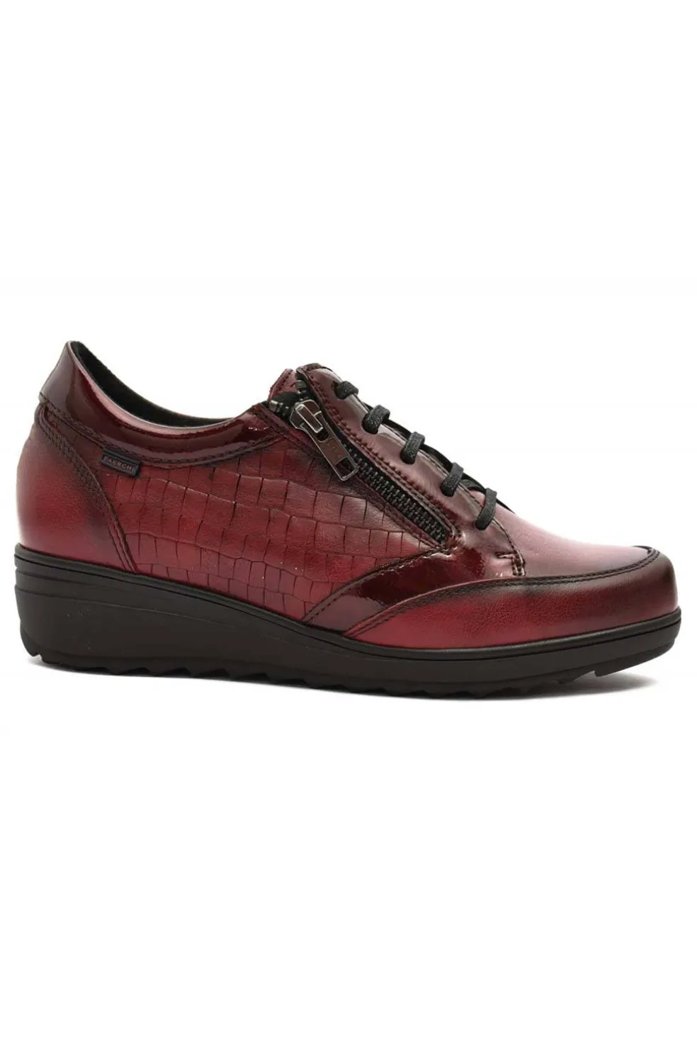 Zapato para mujer en Ancho Especial Confort con cuña. Calzado de piel de vacuno, con cordones, cremallera y suela de caucho. 100% hecho es España.