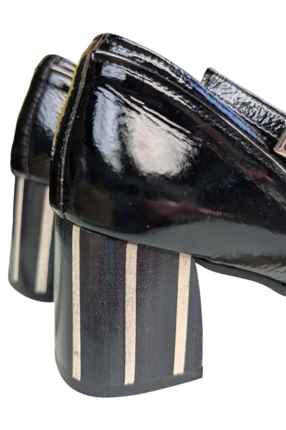 - Tacón: Cuadrado bicolor de 5,5 cm