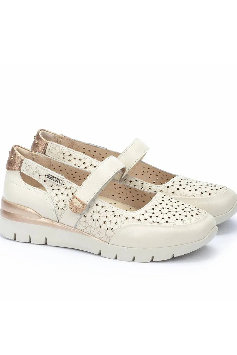 Bailarina deportiva con cierre adherente para mujer. Este modelo de bailarinas semi abiertas son el modelo que buscabas para abrir paso al buen tiempo. La punta le da un estilo elegante, y tiene detalles en la piel formando flores en la parte delantera. Tienen una hebilla lateral para abrocharlas. ¡Luce tus pies esta primavera!