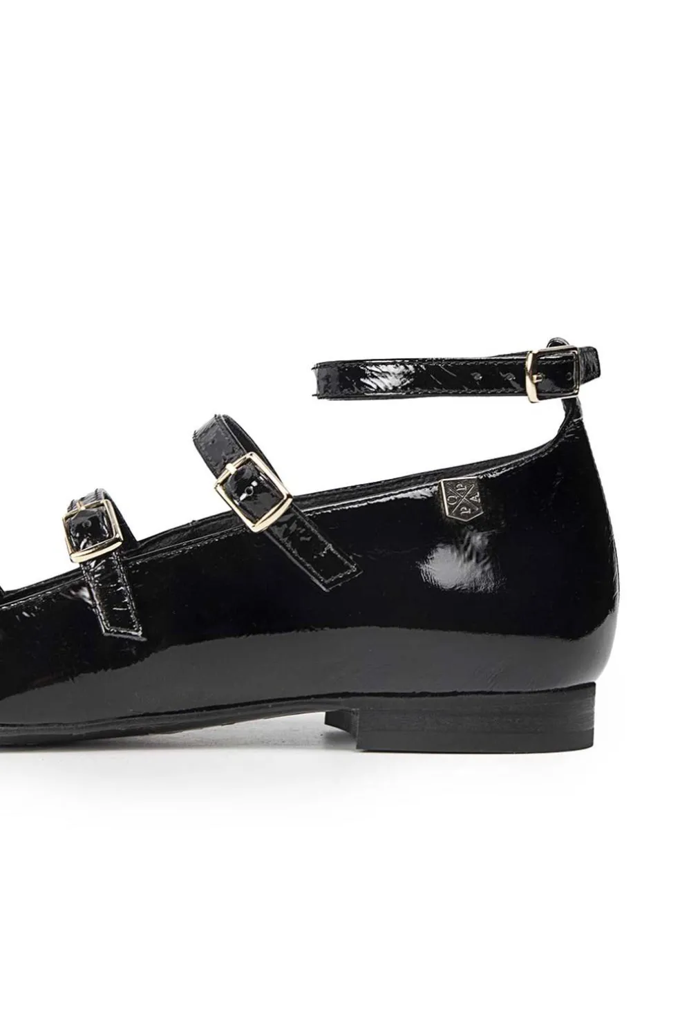 Las icónicas bailarinas Mary Jane con punta fina, conocidas ahora como Ainhoa, tienen tres correas ajustables con hebillas doradas, proporcionando un ajuste perfecto y un toque chic. Este diseño combina elegancia y comodidad, siendo perfectas para cualquier ocasión.